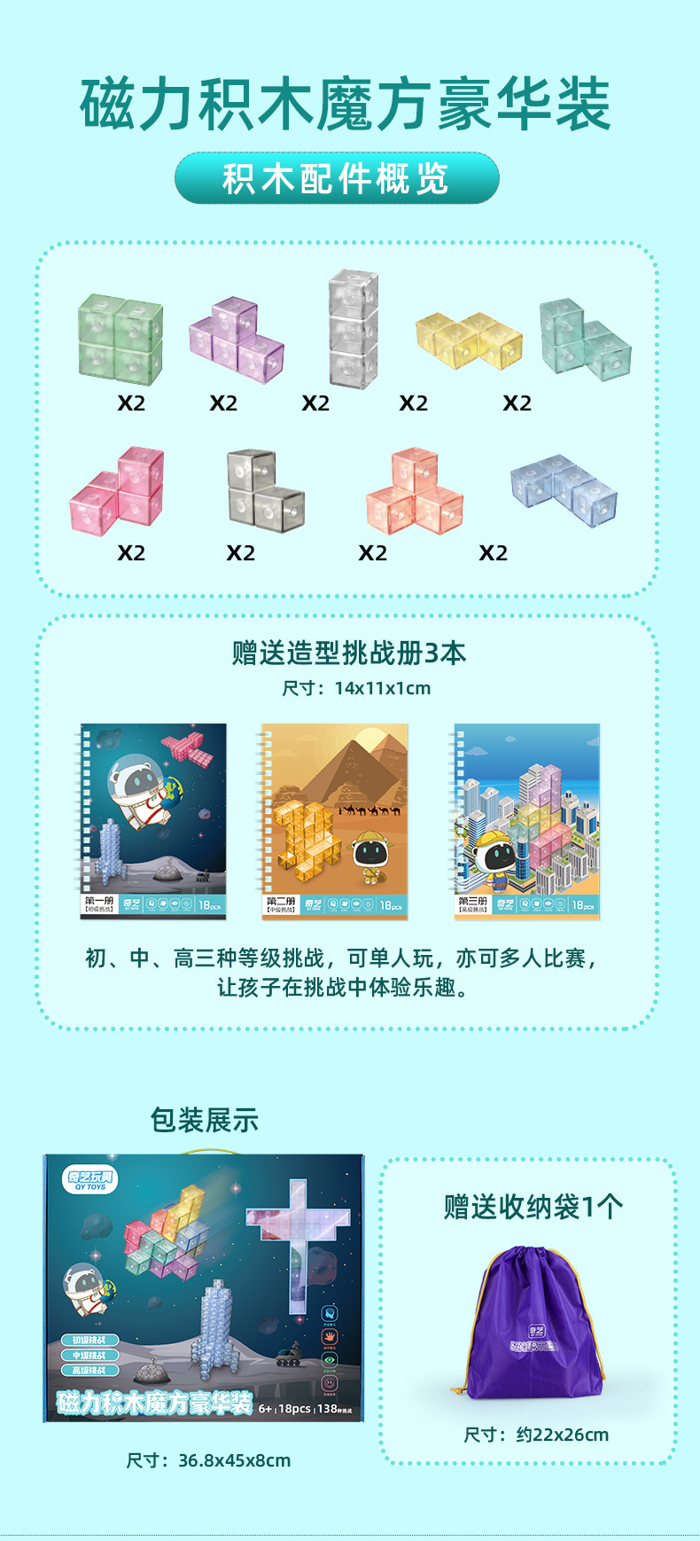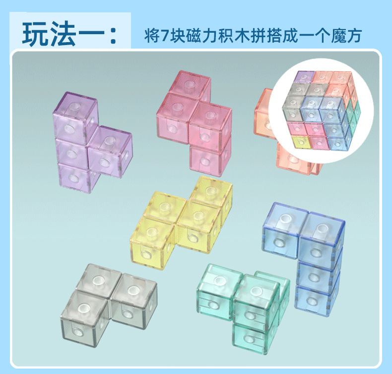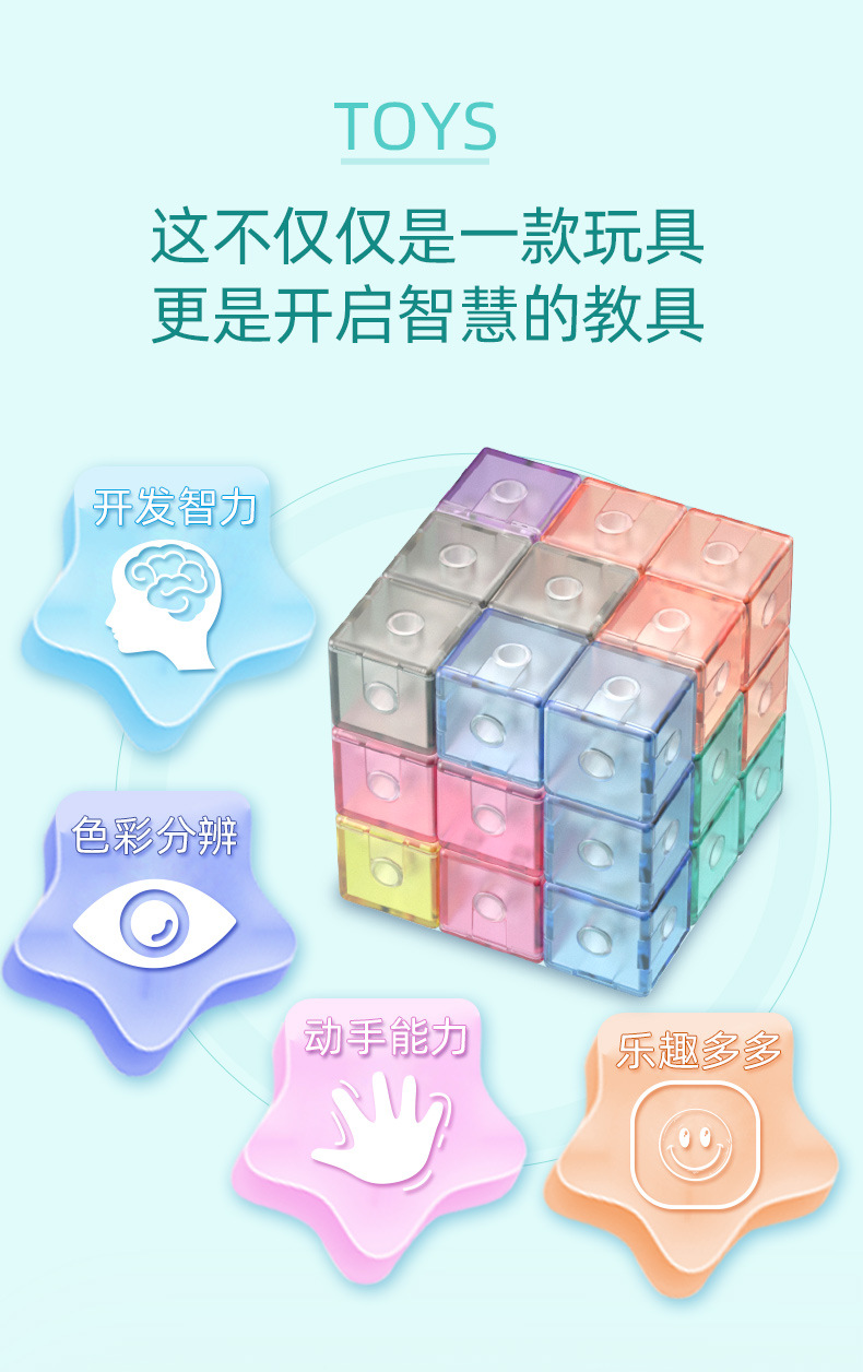 3D Magnetic Rubik's Cube building blocks, Soma Cube Rainbow Puzzle, children's intelligence and early education toys for intellectual enlightenment