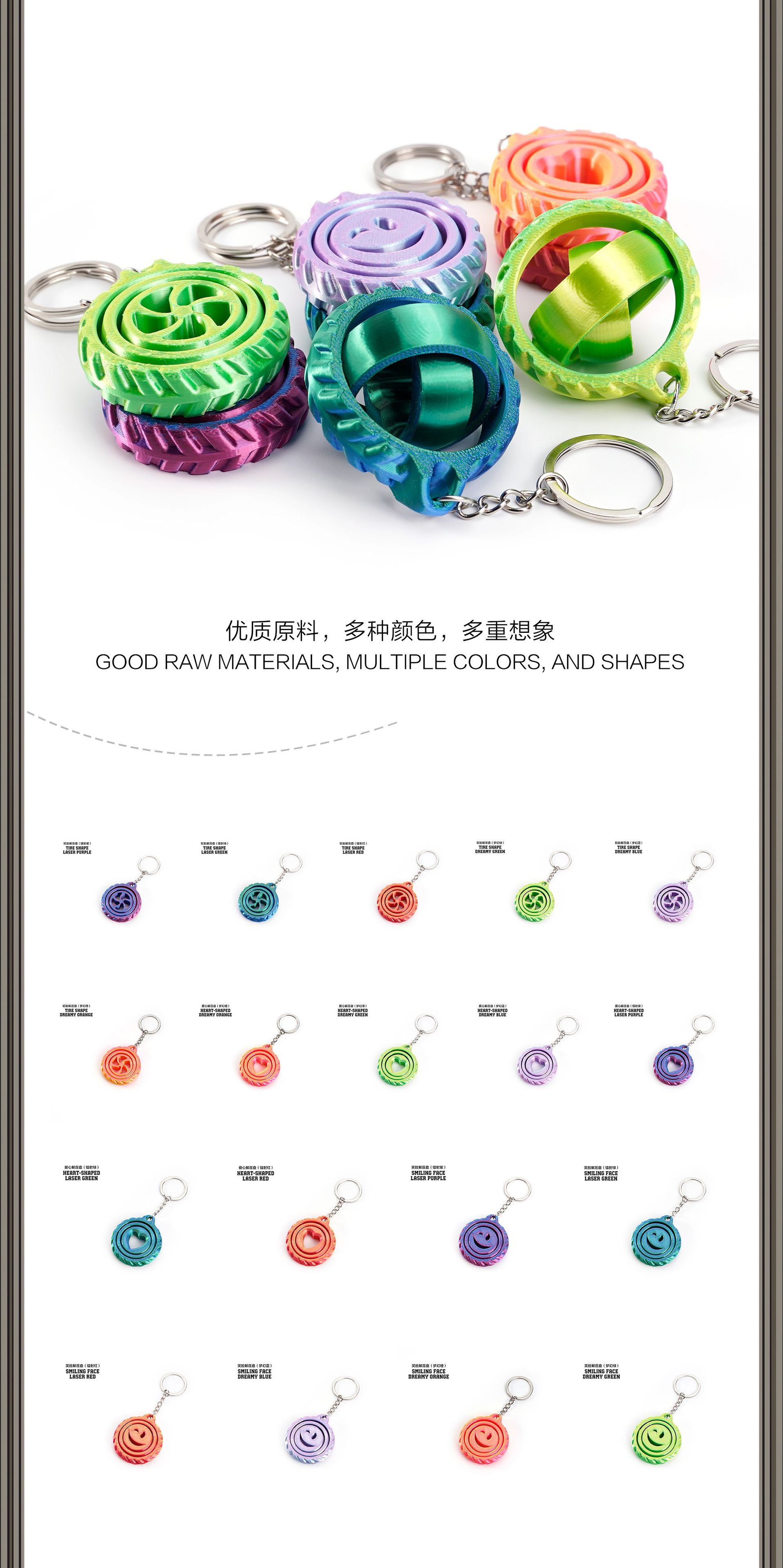 Smiling Face Stress Relief Keychain (Laser Green)