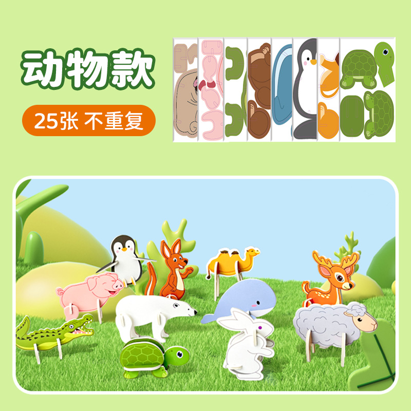 3D stereoscopic jigsaw puzzles, animal, insect, dinosaur, airplane, children's educational toys, creative DIY, handcrafted assembly