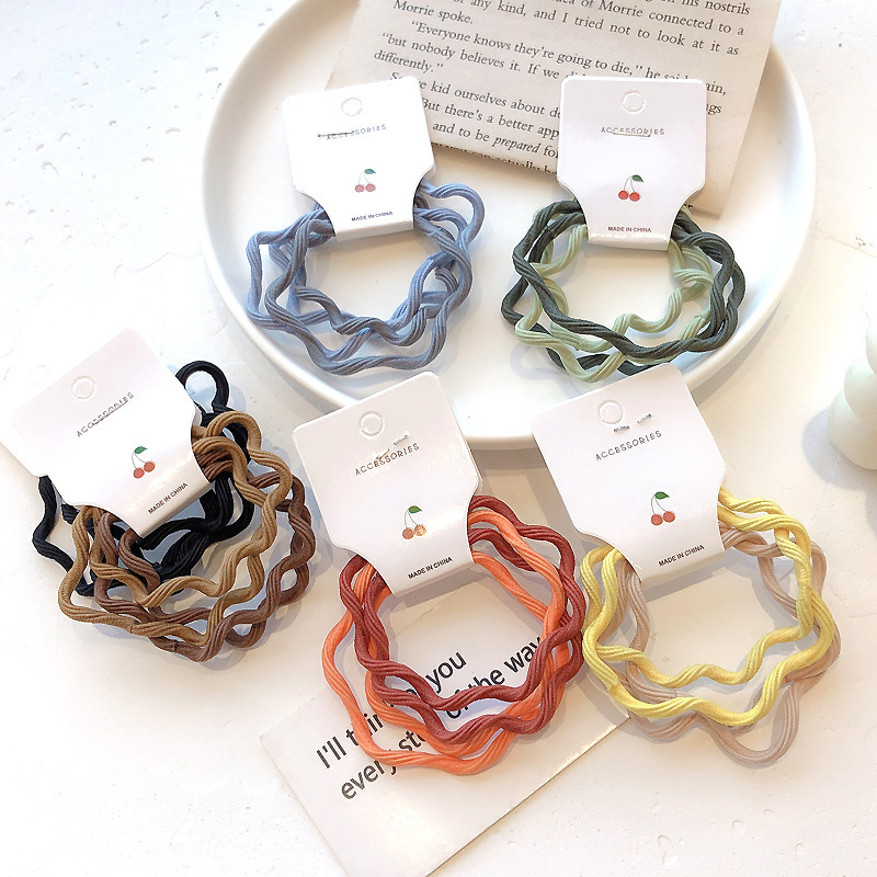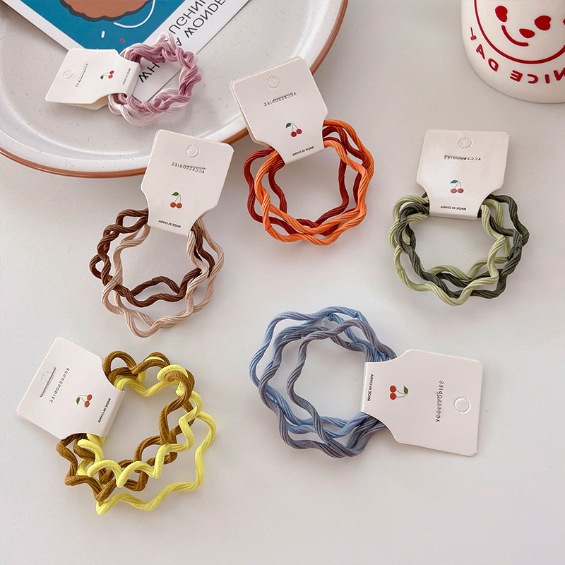 4 clips ~ Ins-style Korean wavy line basic hair band, candy-colored girl's hair tie rubber band simple hair tie