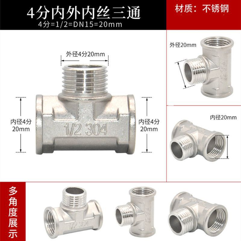 4-point stainless steel inner and outer wire direct elbow three-way union water heater integrated union water pipe fittings