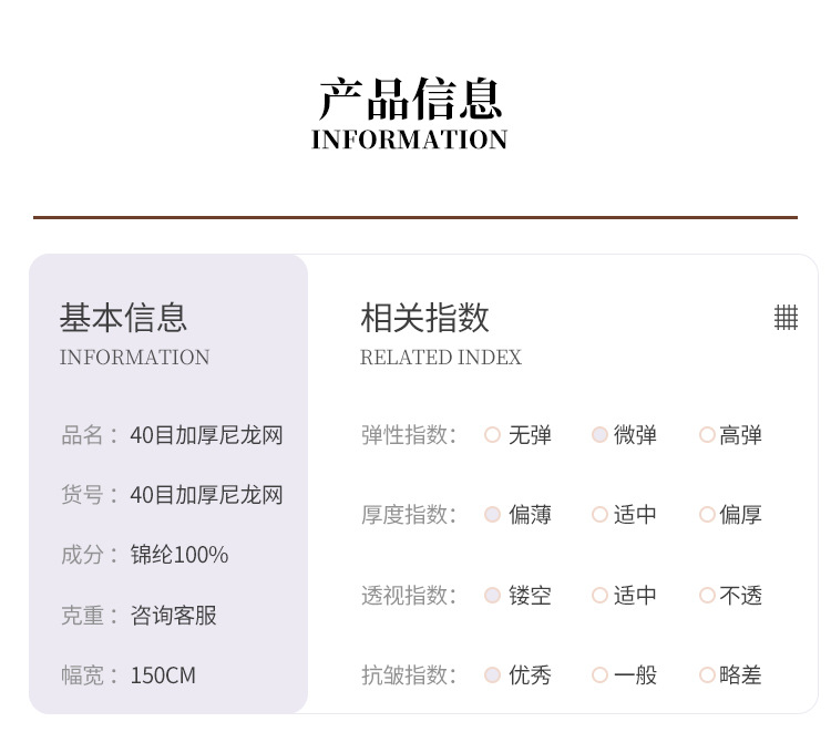 40-mesh thickened nylon mesh fabric for women's, children's, wedding and dress, nylon mesh denser mesh fabric