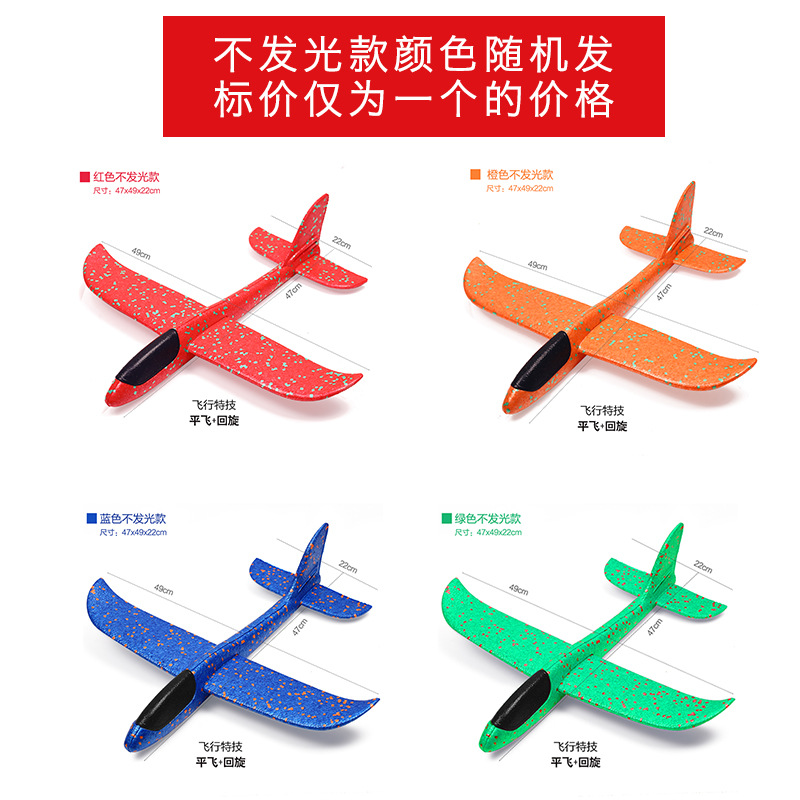 49cm large foam airplane, luminous toy, hand-thrown airplane model, children's glider, event promotion, gift festival