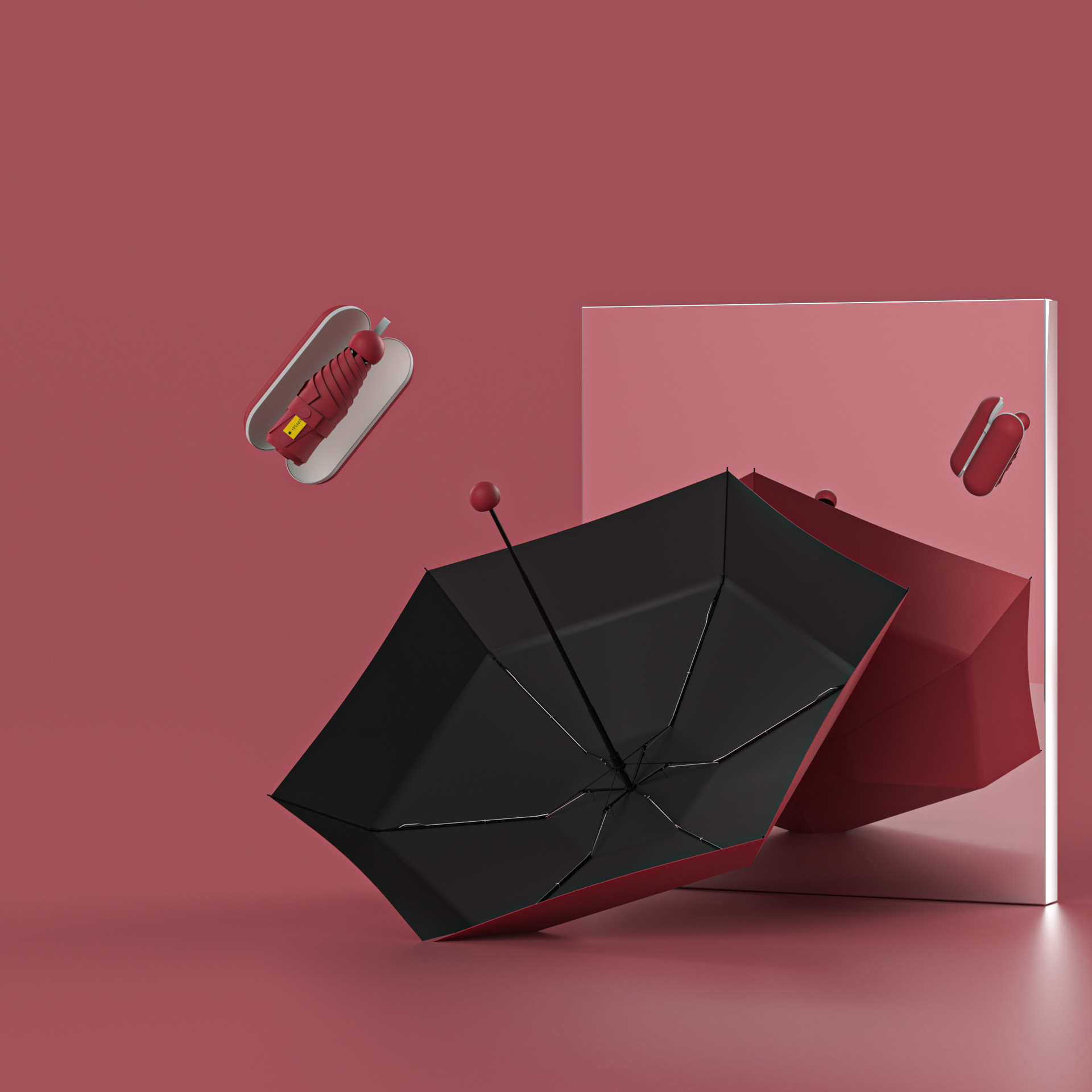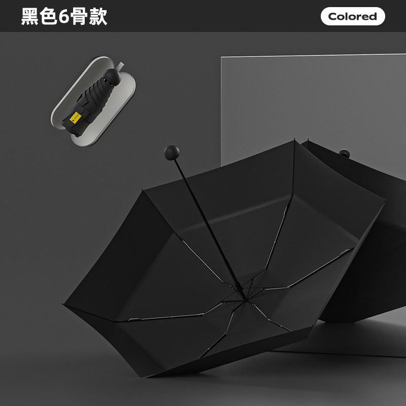 Obsidian Black [6-bone Capsule Umbrella + Sunscreen Black Vinyl] + Portable umbrella bag