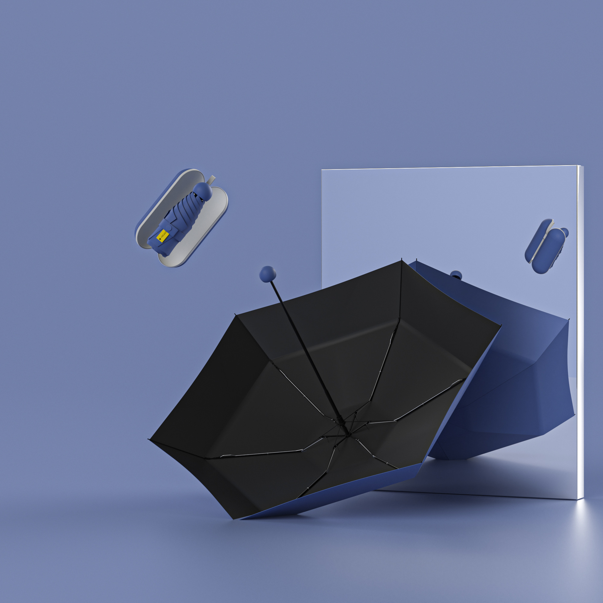 Navy blue [6-bone Capsule Umbrella + Sunscreen Black Vinyl