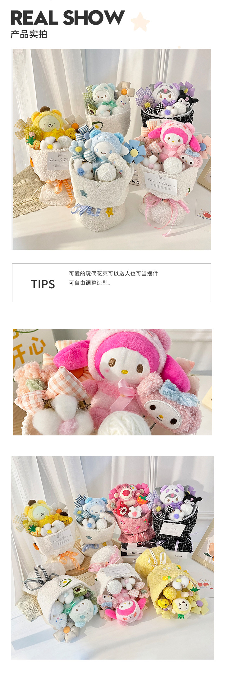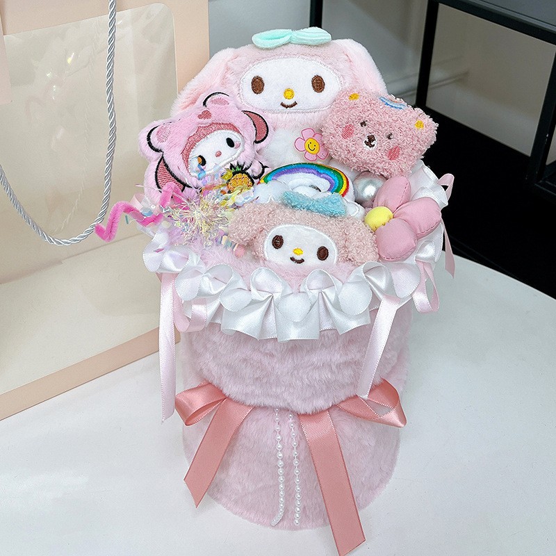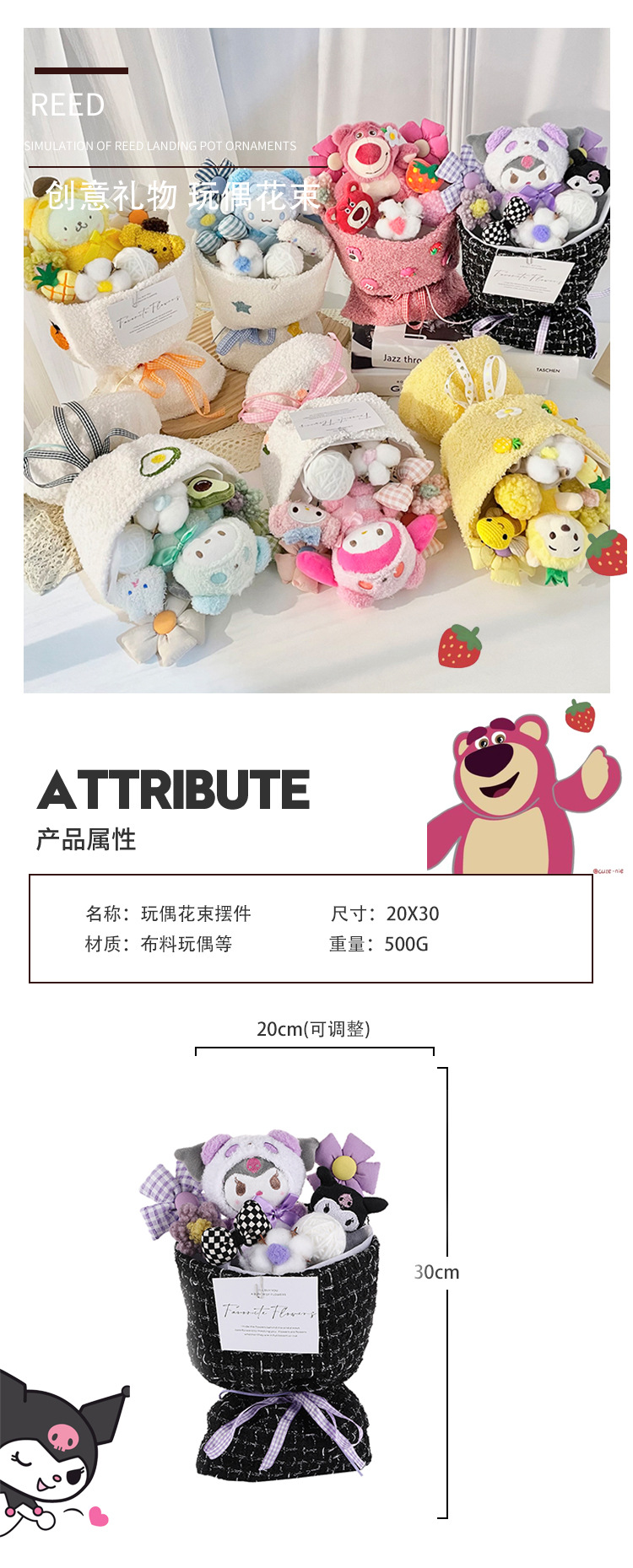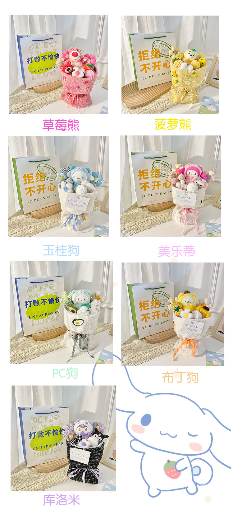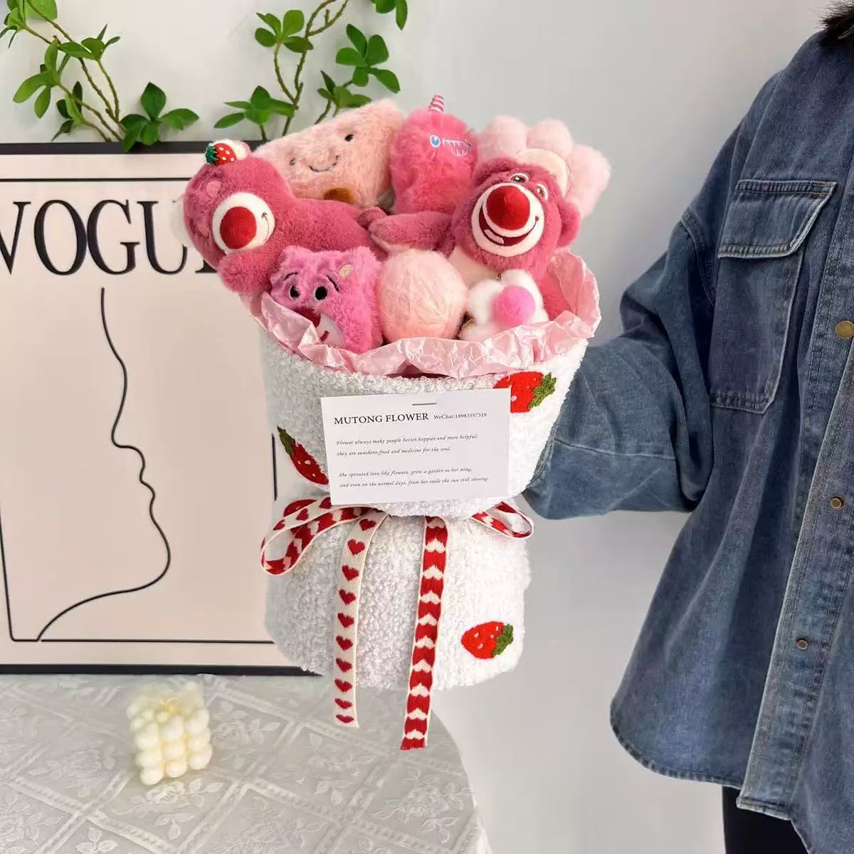 WO078-2 Strawberry bear bouquet + Gift bag greeting card light string