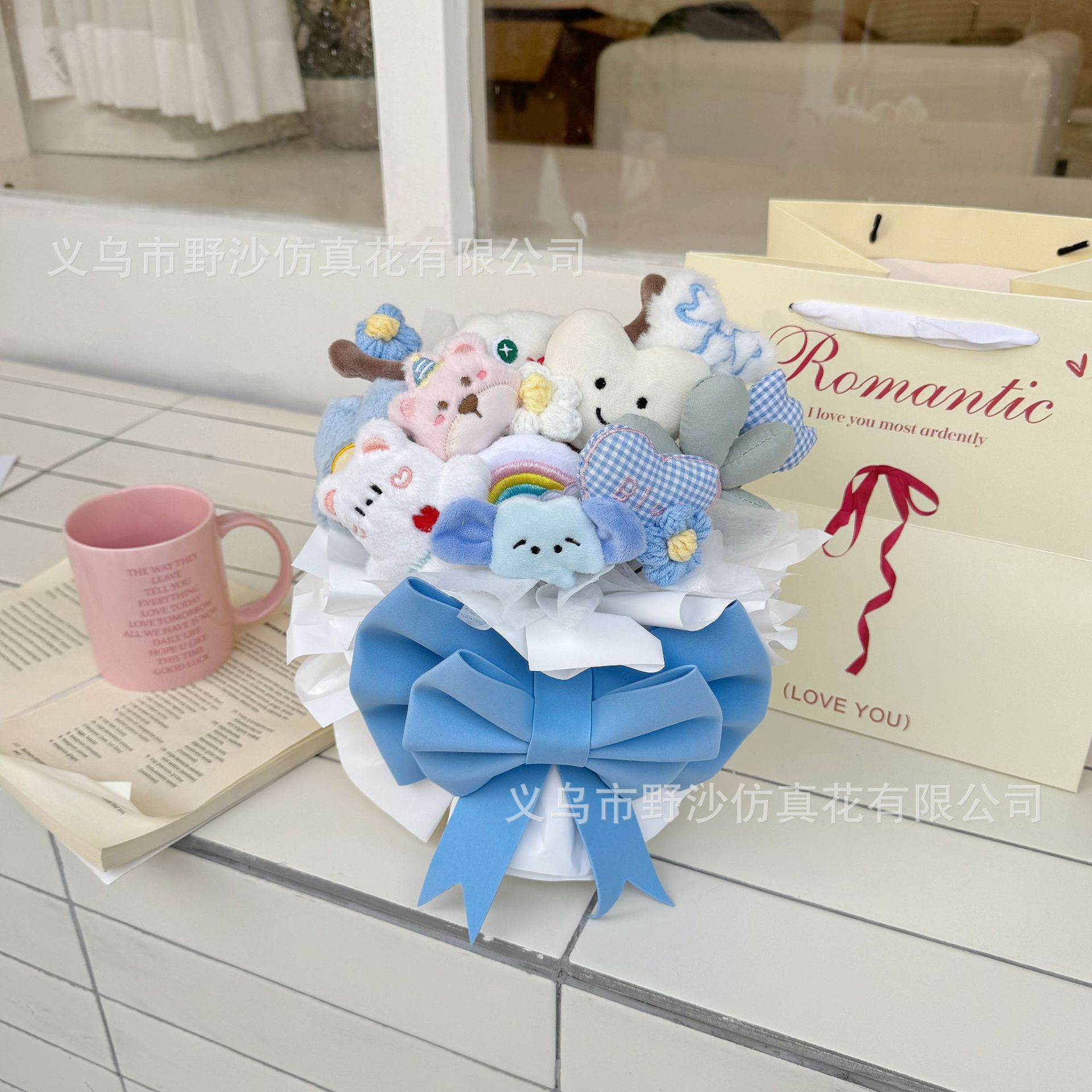 WO090- (Rich Butter) Kabibabara Brown Bouquet + Gift Bag Greeting Card Light String (18*32cm)