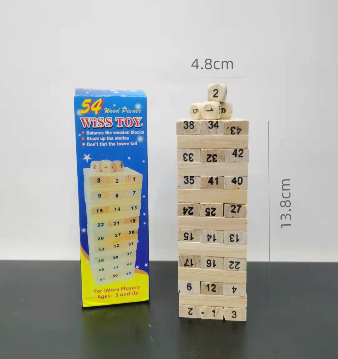 54-piece large Jenga building blocks children's digital color stacked high domino wooden toy puzzle
