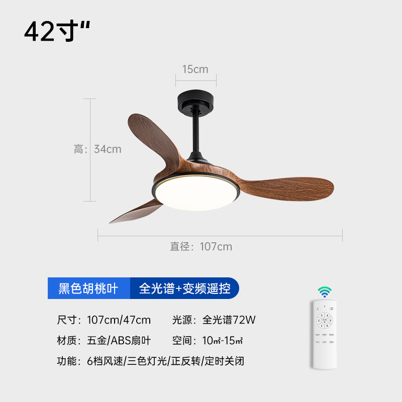 (Full Spectrum) 42-inch boom - Three-leaf (full wood grain + 72W variable light) variable frequency remote control