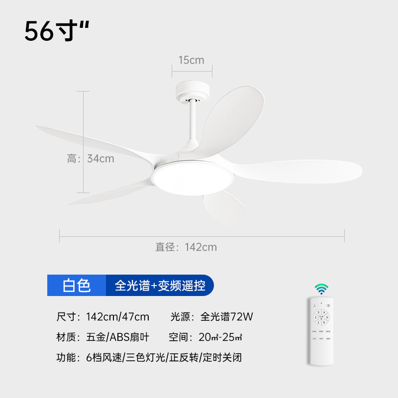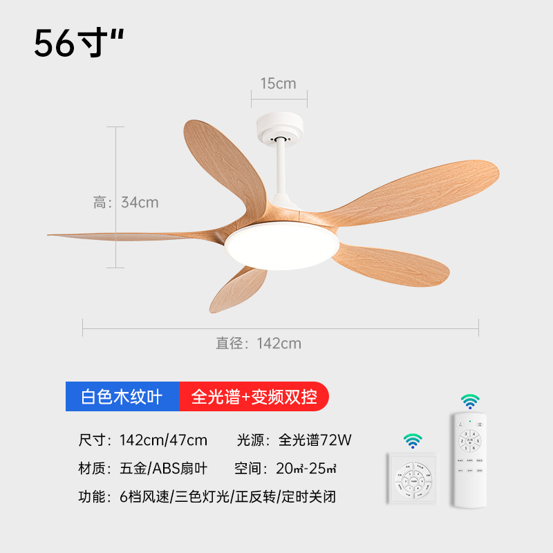(Full Spectrum) 56-inch boom - Five-leaf (white + original wood grain leaf + 72W variable light) variable frequency remote control
