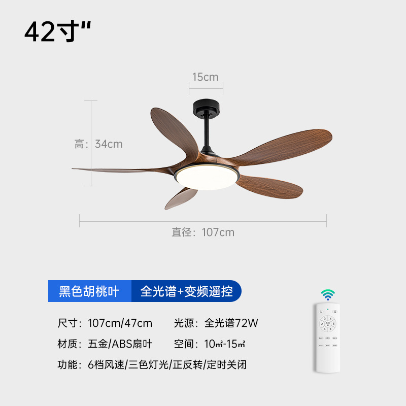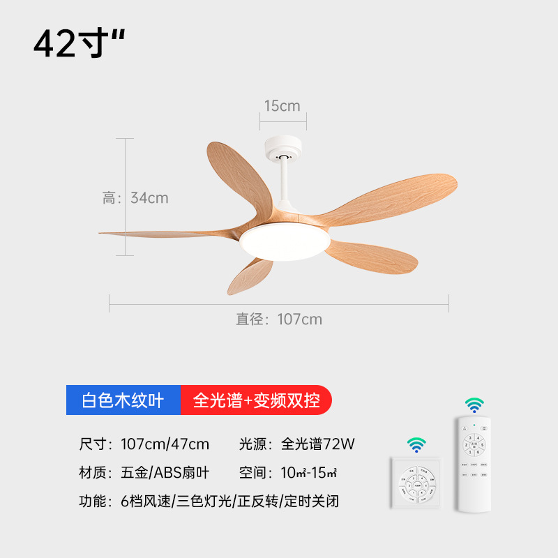 (Full Spectrum) 42-inch boom - Five-leaf (full wood grain + 72W variable light) variable frequency remote control