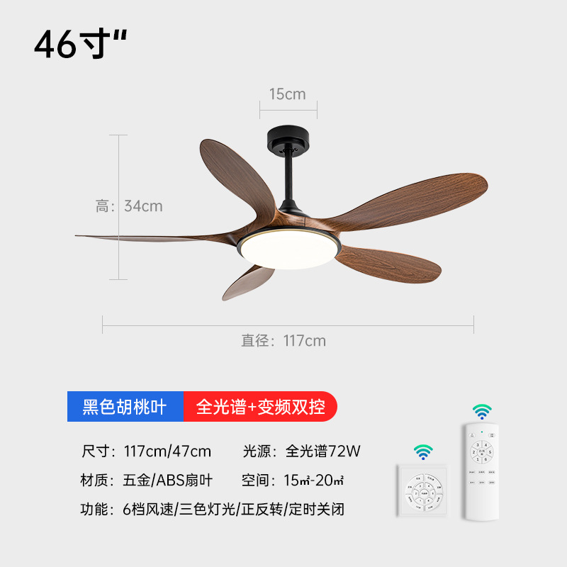 (Full Spectrum) 46-inch boom - Five-leaf (full wood grain + 72W variable light) variable frequency remote control