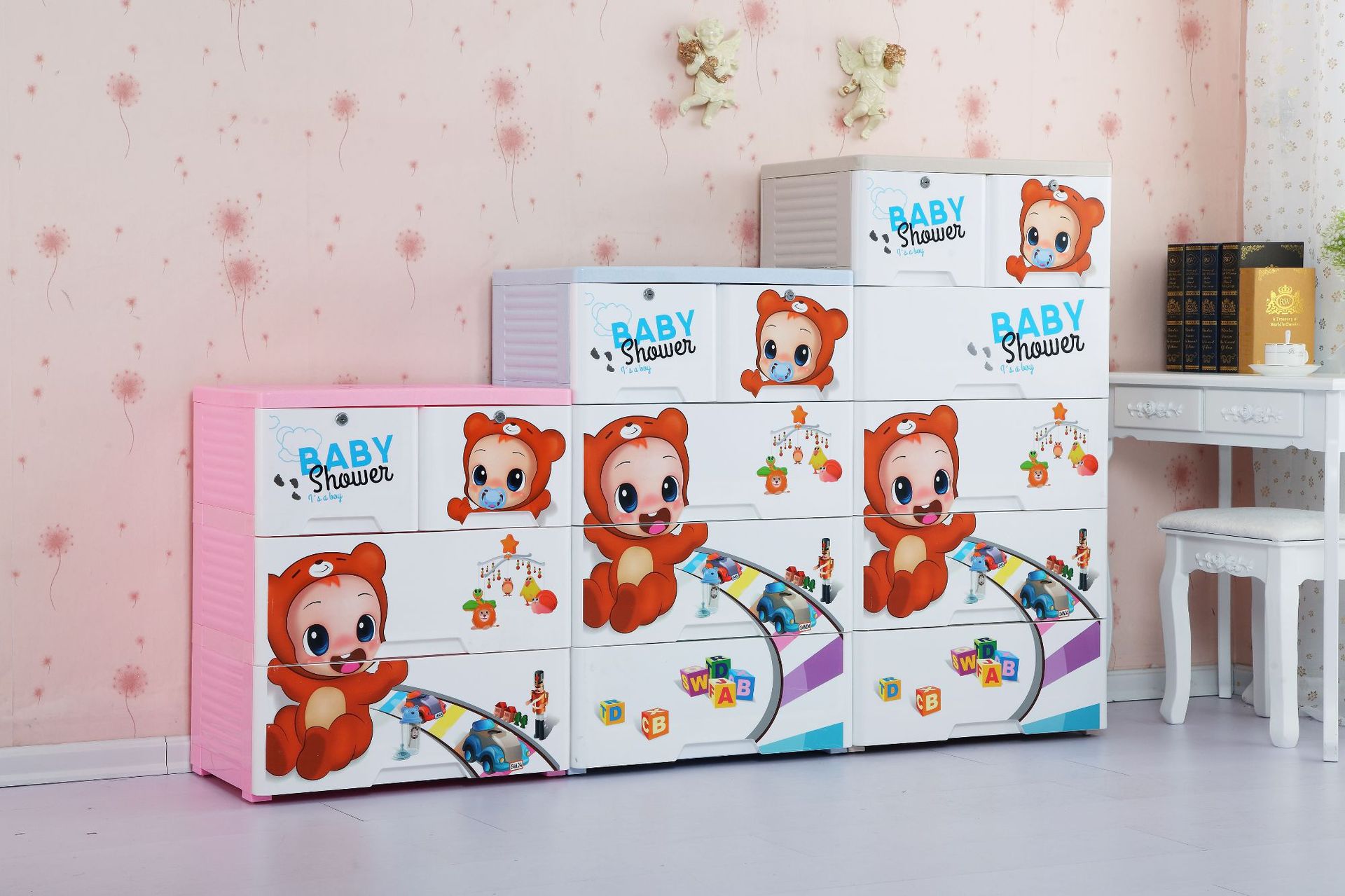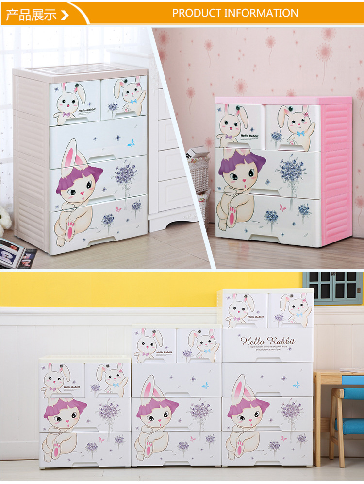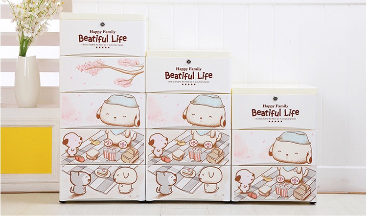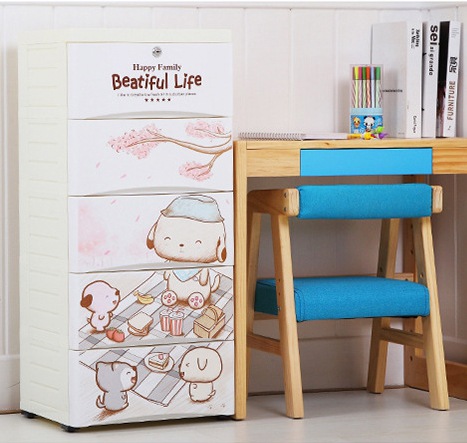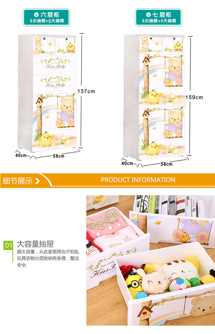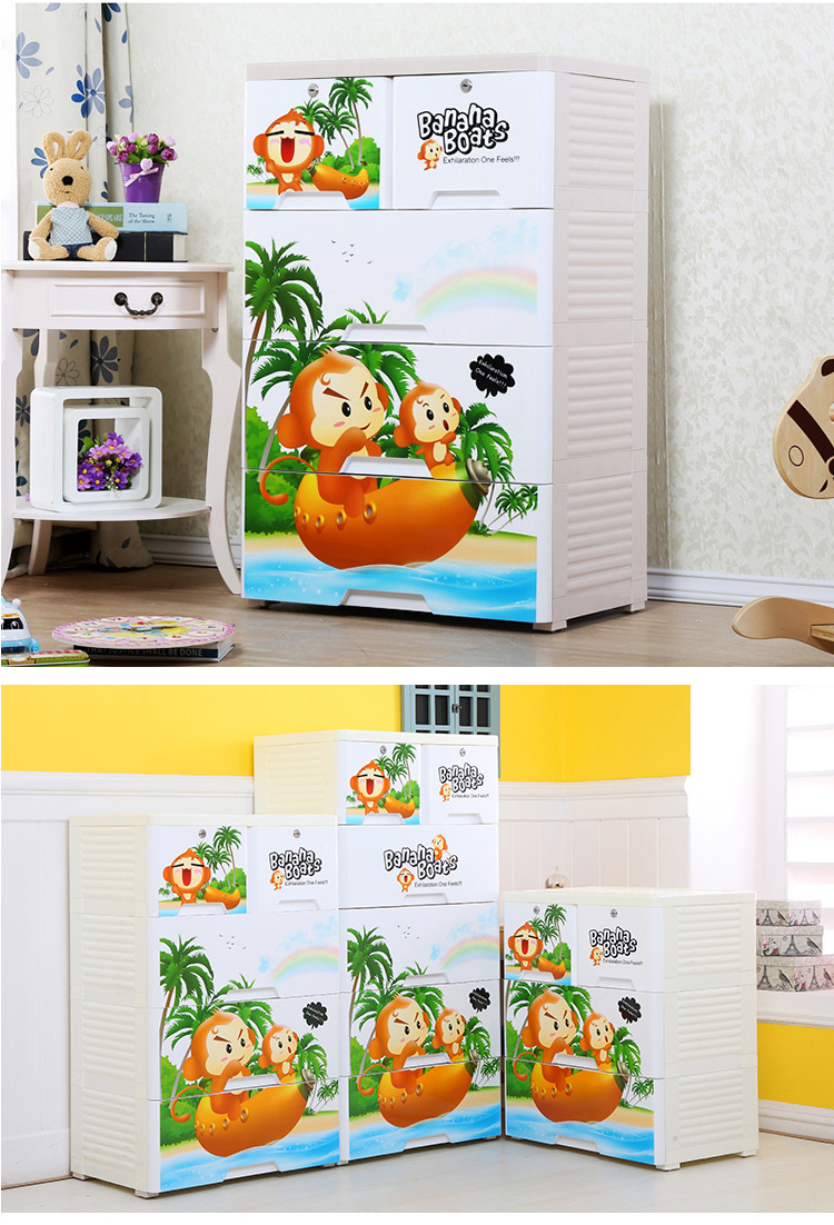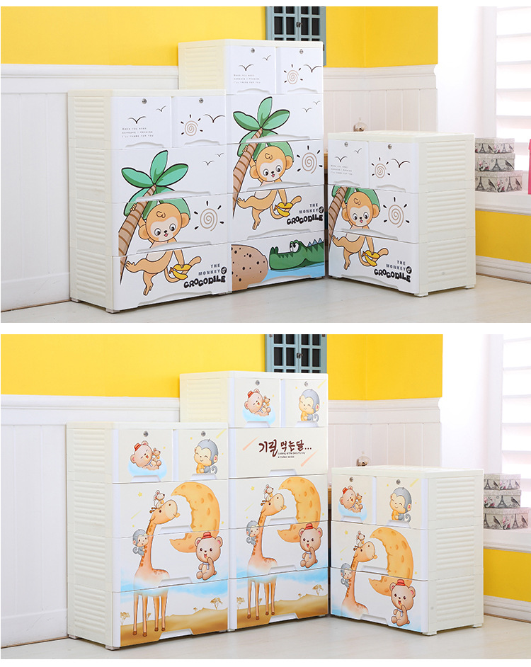 58-sided wide printed thickened cartoon drawer-type storage cabinet, plastic baby and children's wardrobe, chest of drawers, organizing wardrobe