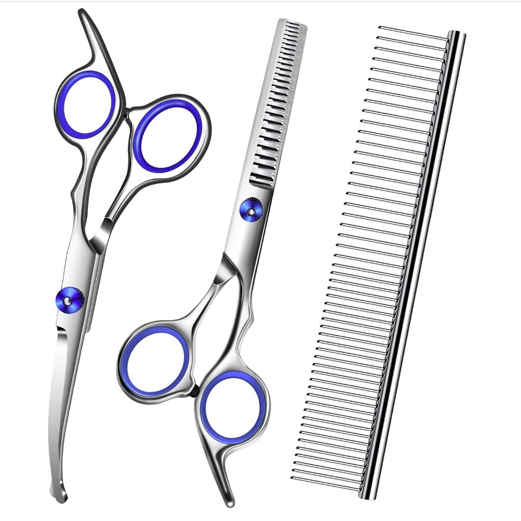 x- Blue Curved Scissors + Teeth Scissors op bag set [Round Head Style]