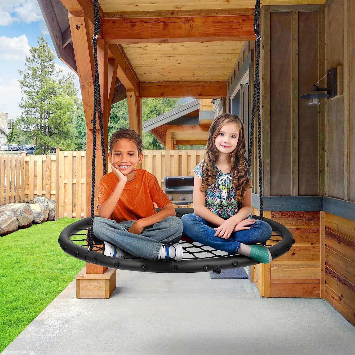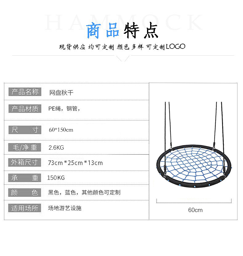 60 cm outdoor children's hanging basket swing circular woven net rope bird's nest swing children's swing