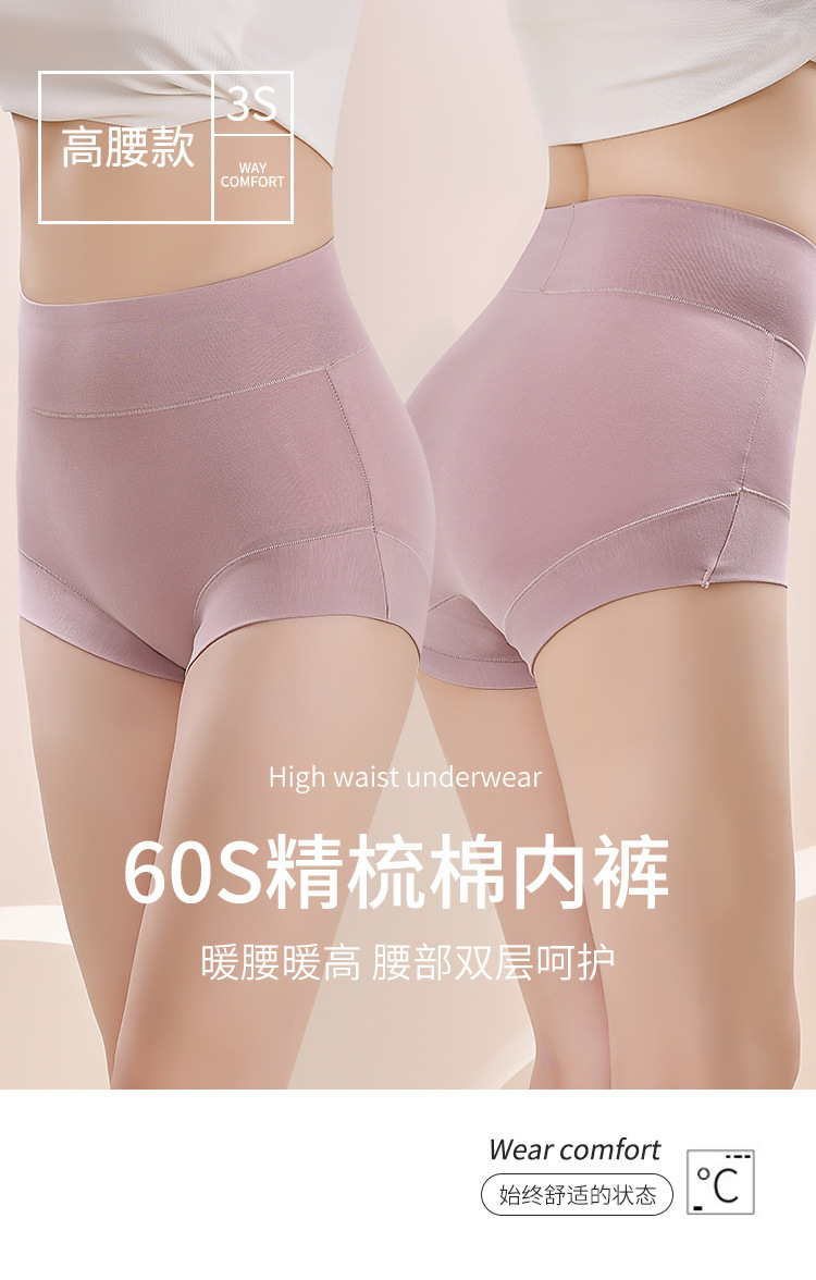 60-count combed cotton women's high-waisted underpants, large size pure cotton crotch antibacterial solid color cotton belly cinching and buttock lifting triangle pants