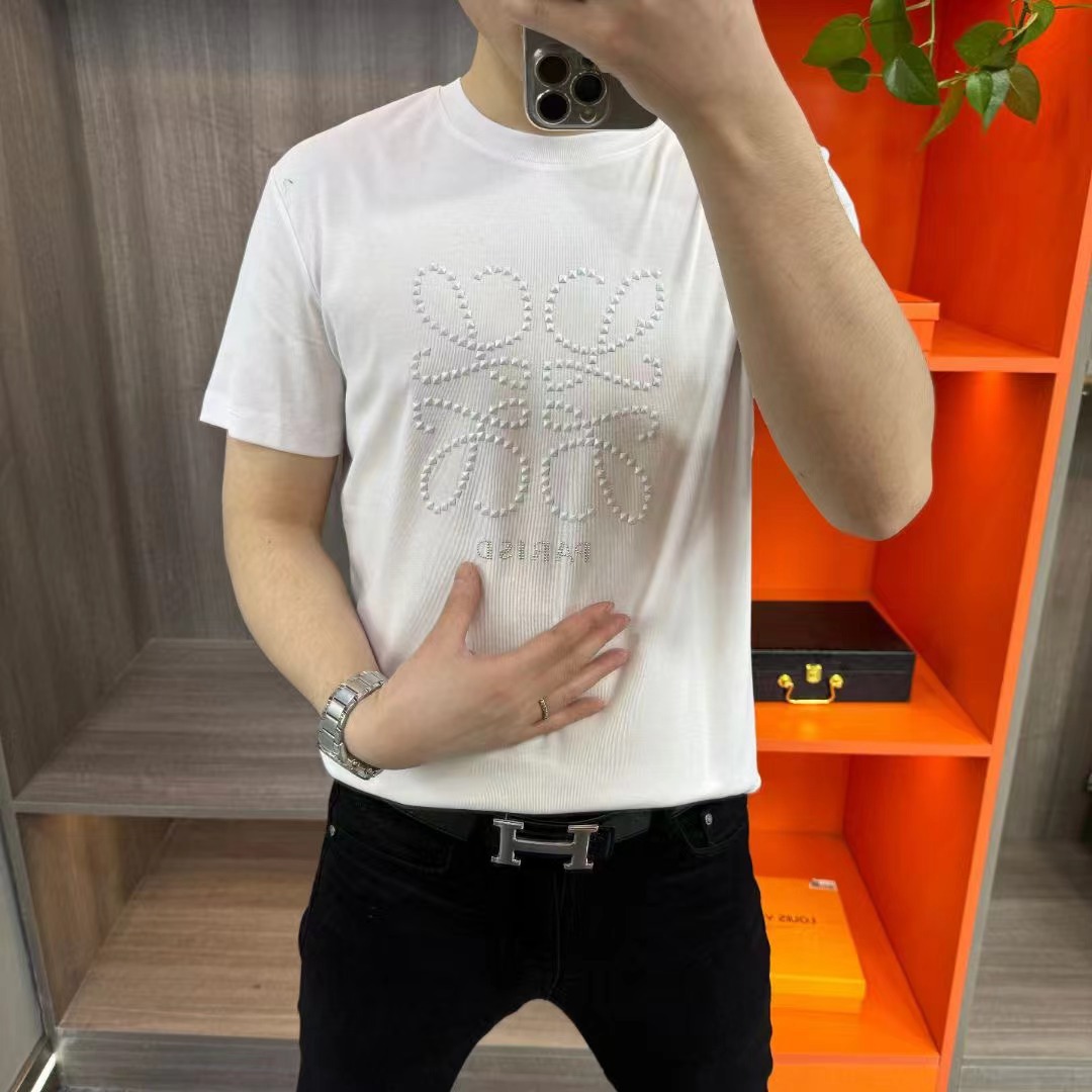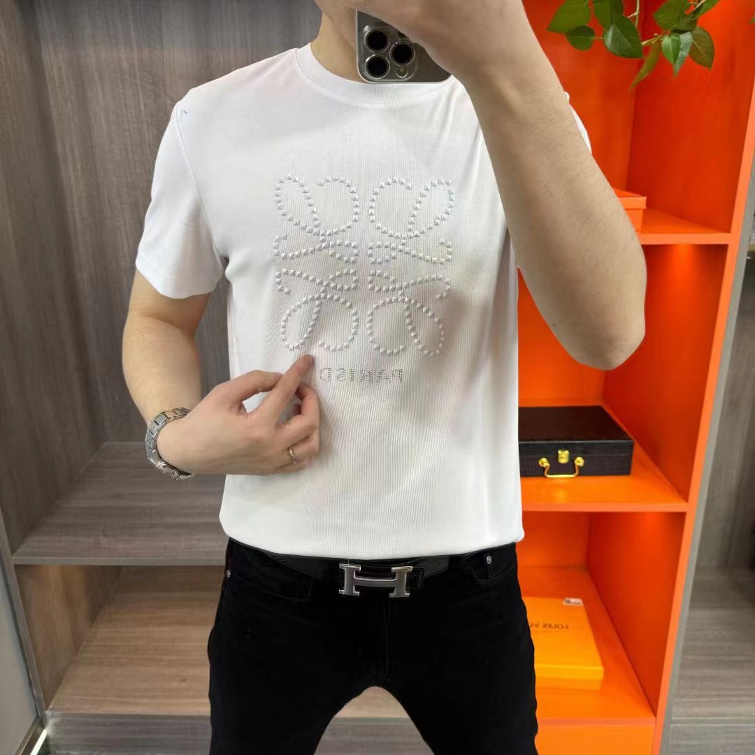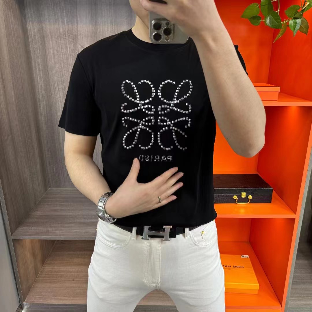 68010 Men's short-sleeved, form-fitting, breathable, diamond-encrusted, high-end, trendy, simple black, casual, cool, round-neck trendy T-shirt