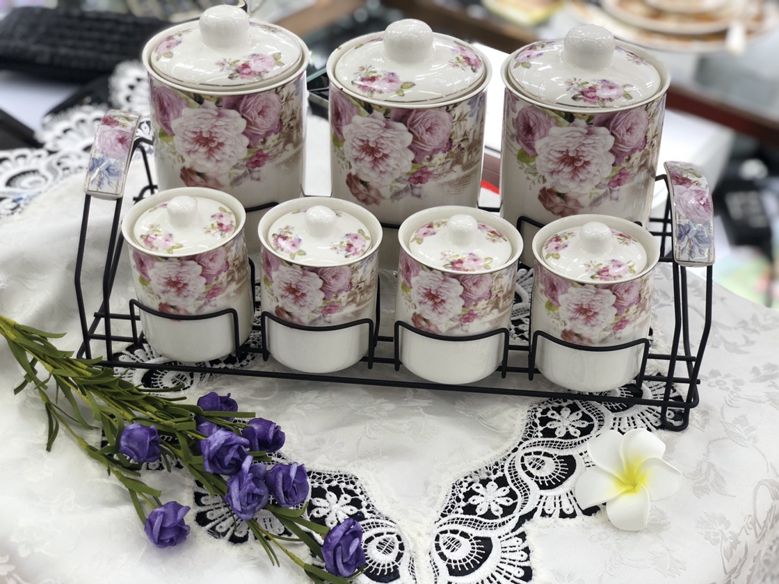 7-piece ceramic sealed jar set, grain and cereal storage box, sealed jar for noodles, beans, grains, spices, kitchen storage jar