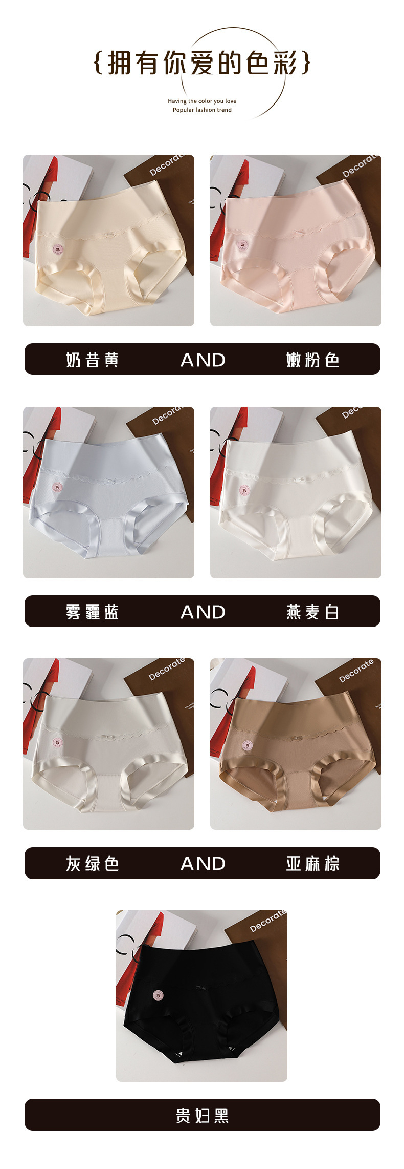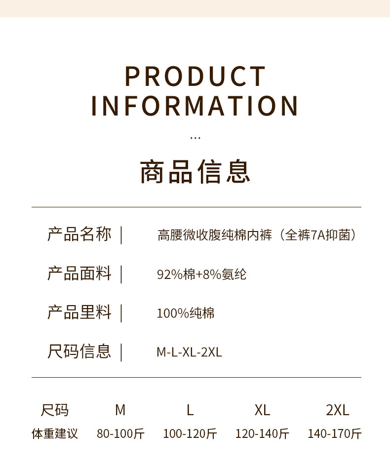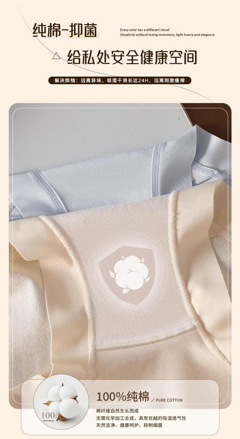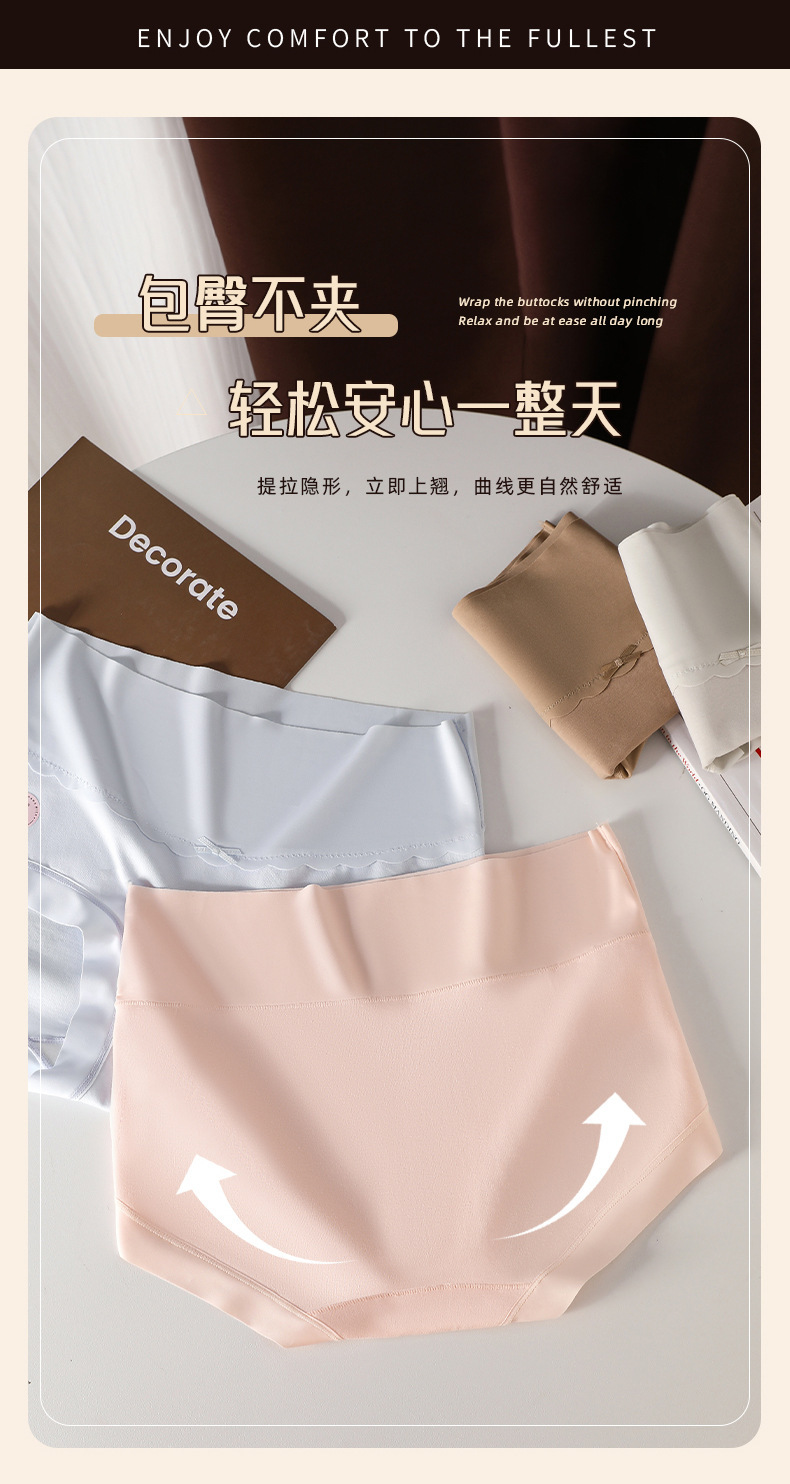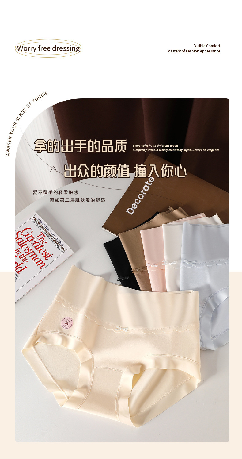 7A antibacterial Class A cotton plus-size high-waisted, comfortable, seamless, hip-hugging underwear for women, pure cotton women's triangle pants