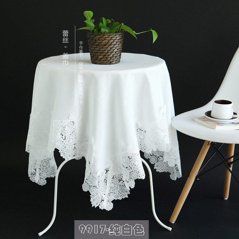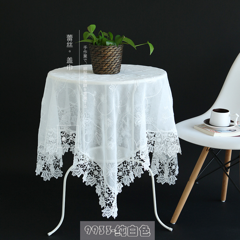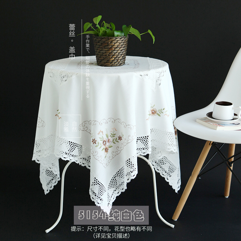 7Y99 simple and modern square table fabric, white round table mat, European country lace small round tablecloth