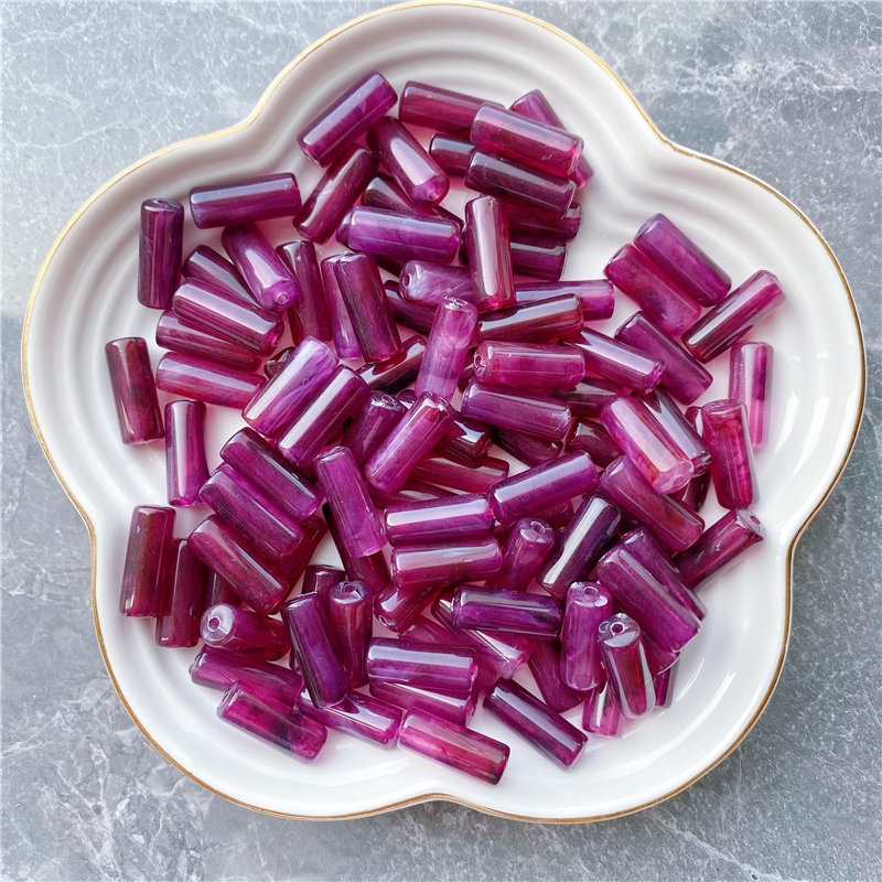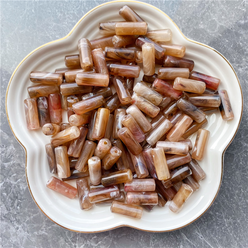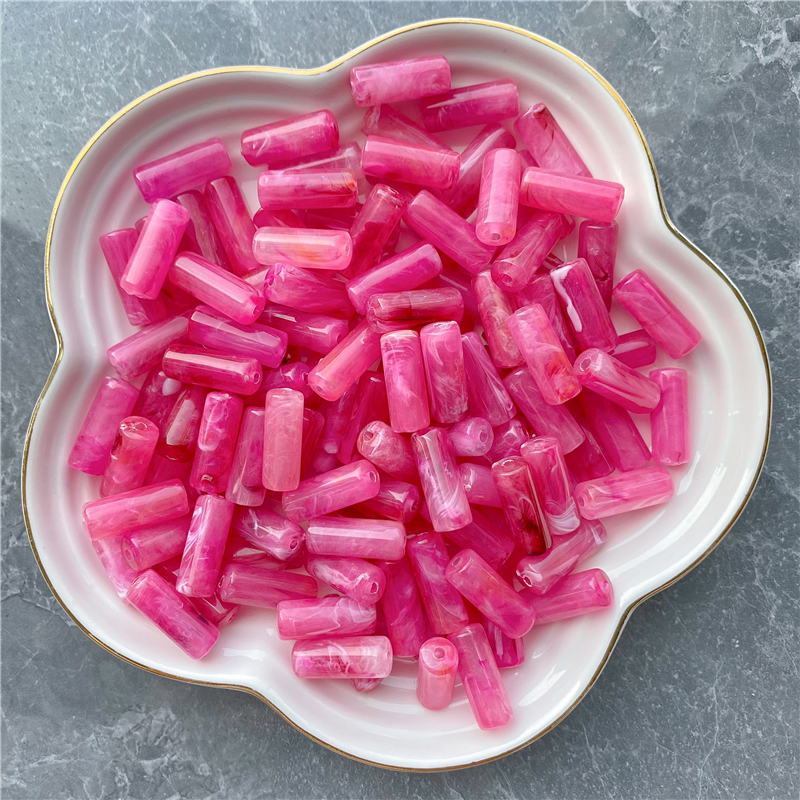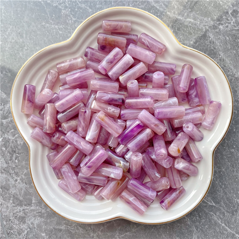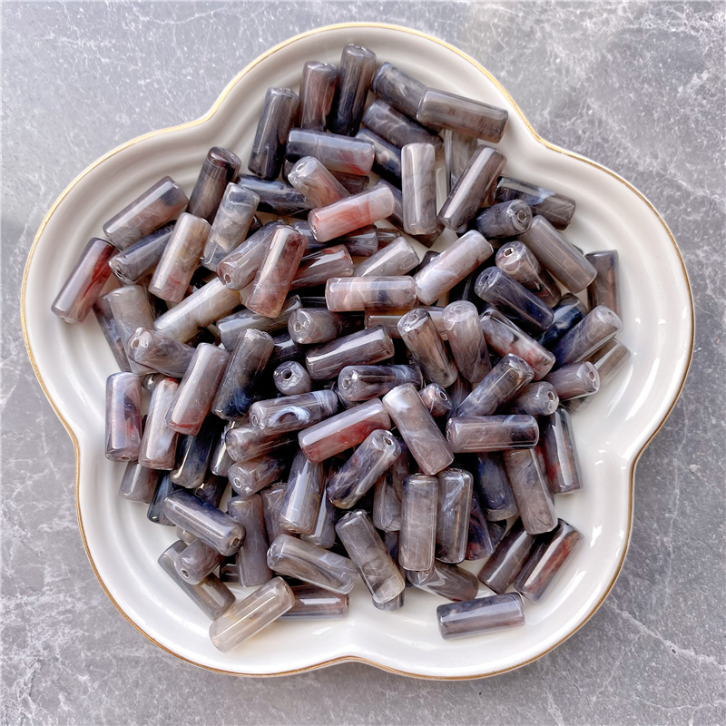 8*20MM cylindrical bamboo-shaped acrylic beads, cloud two-color mist imitation stone, suitable for DIY jewelry, clothing, mobile phone chains, backpack chains, and accessory items
