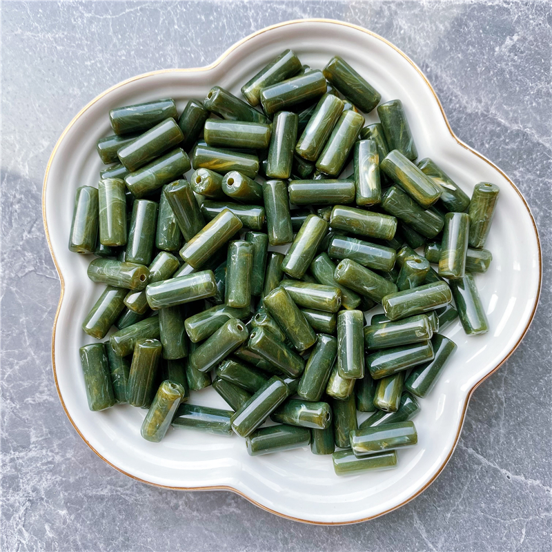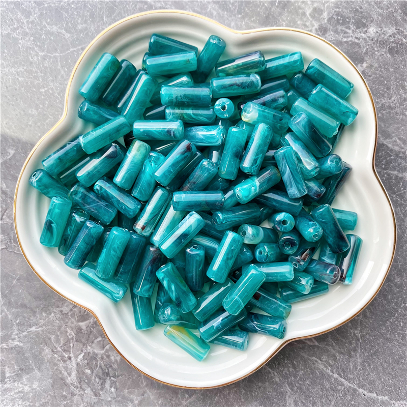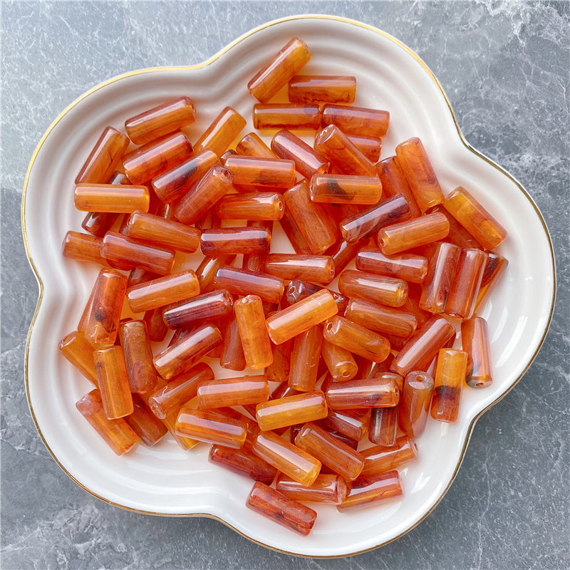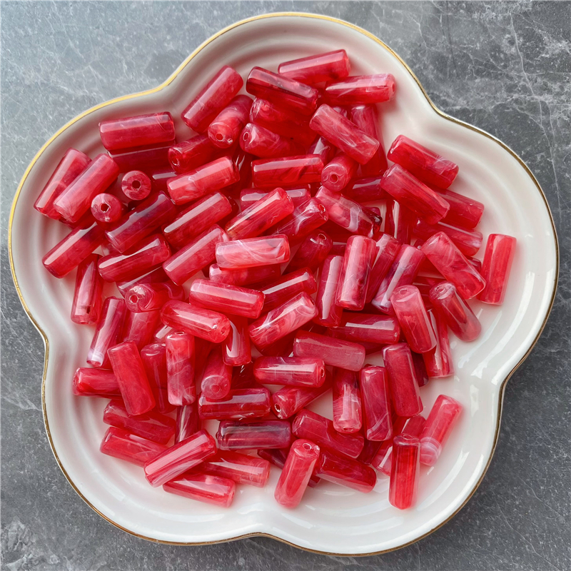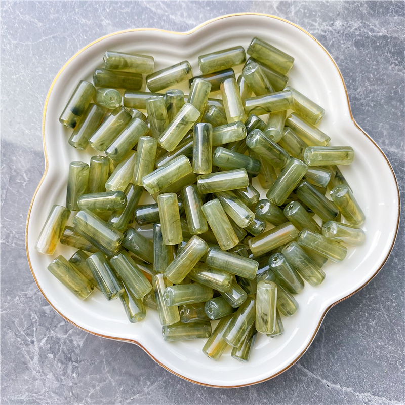 8*20MM cylindrical bamboo-shaped acrylic beads, cloud two-color mist imitation stone, suitable for DIY jewelry, clothing, mobile phone chains, backpack chains, and accessory items