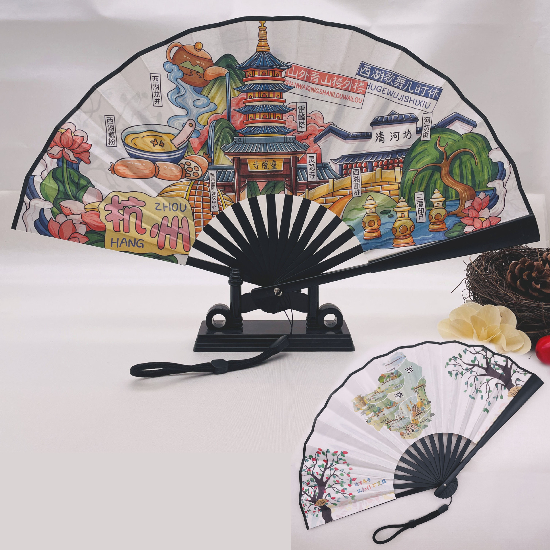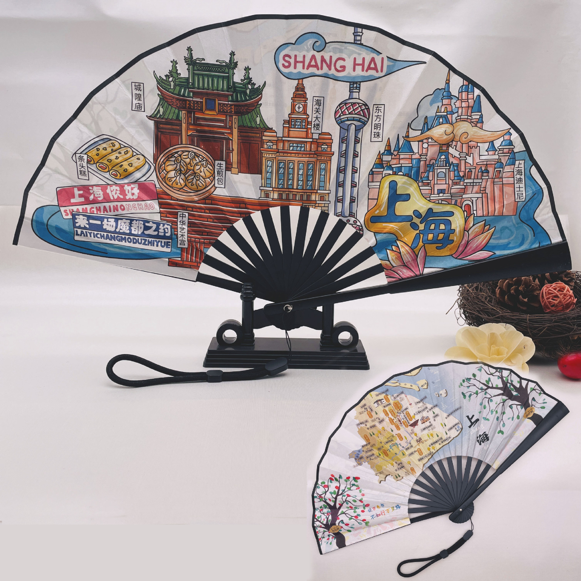 8-inch national trend style urban scenic spot national style folding fan with wristband for fingerprint collection, folding fan map tour guide fan