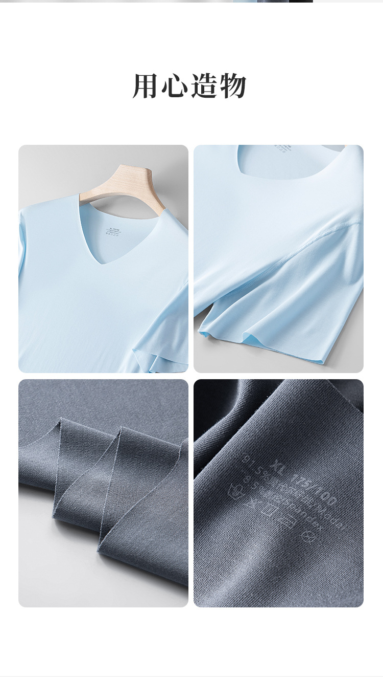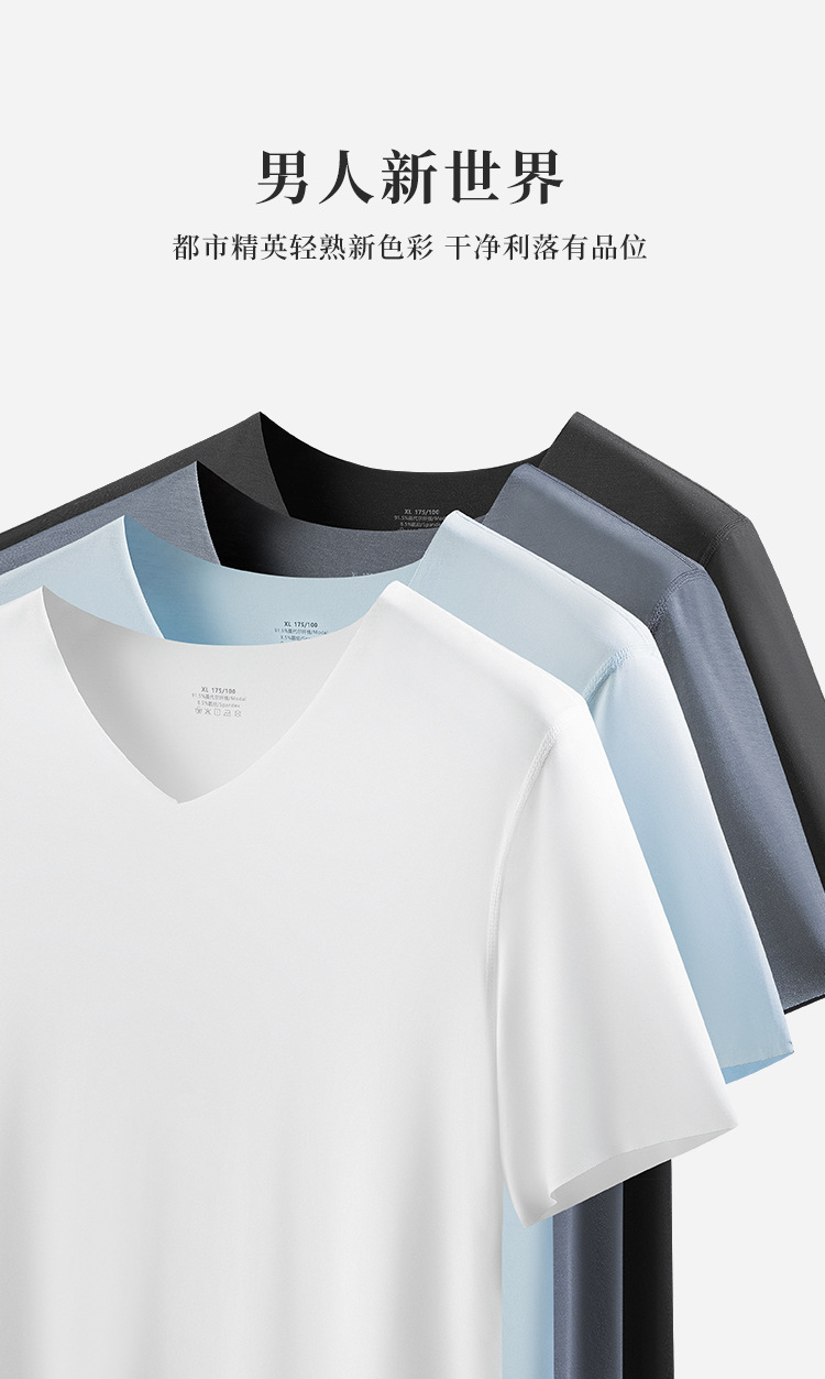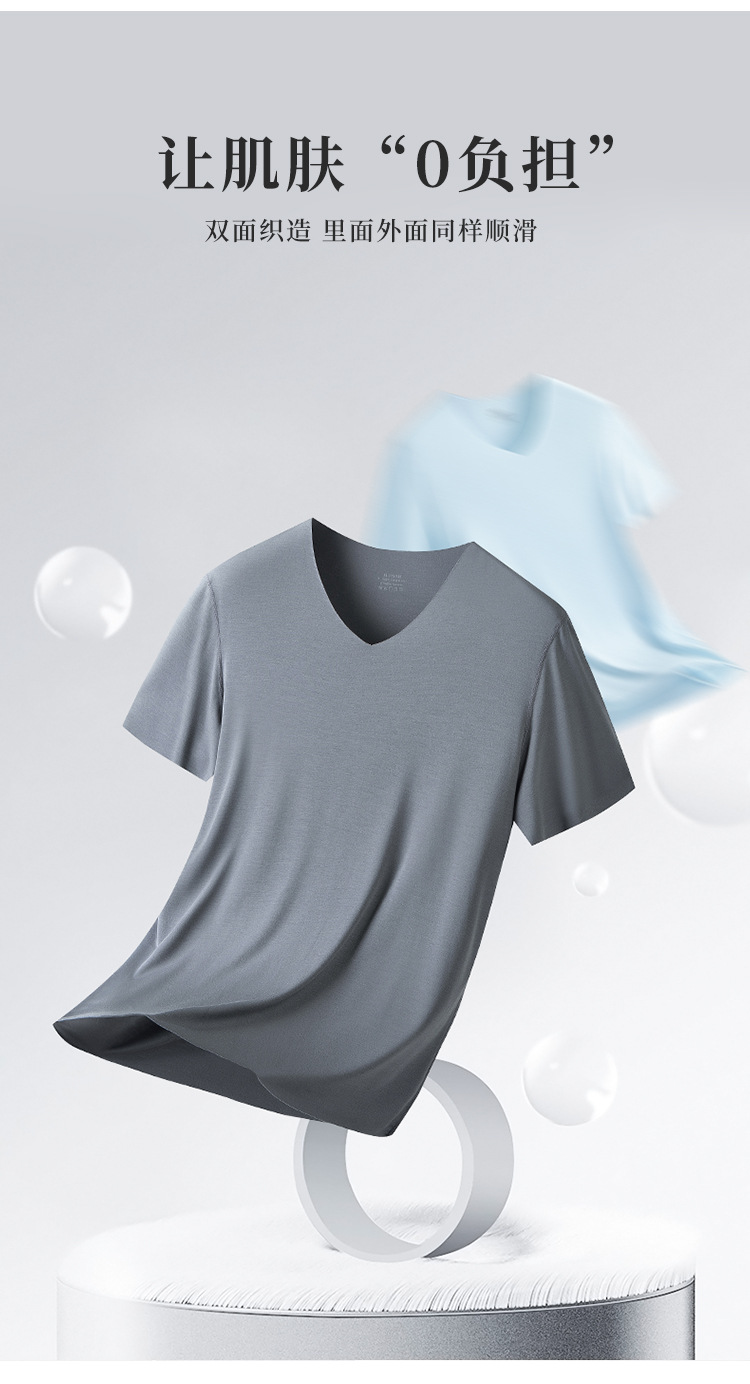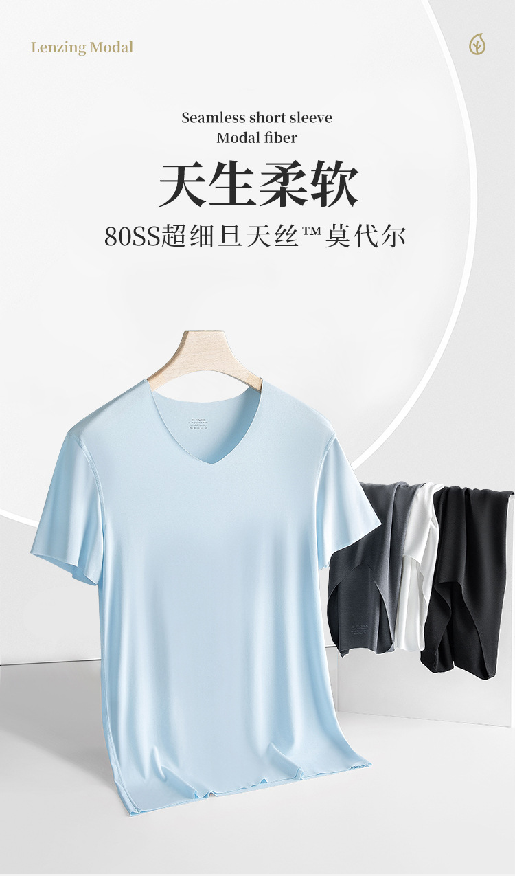 80 double-sided Modal Spring/Summer men's short-sleeved T-shirts, thin, seamless solid color, suitable for wearing as a base layer, in stock
