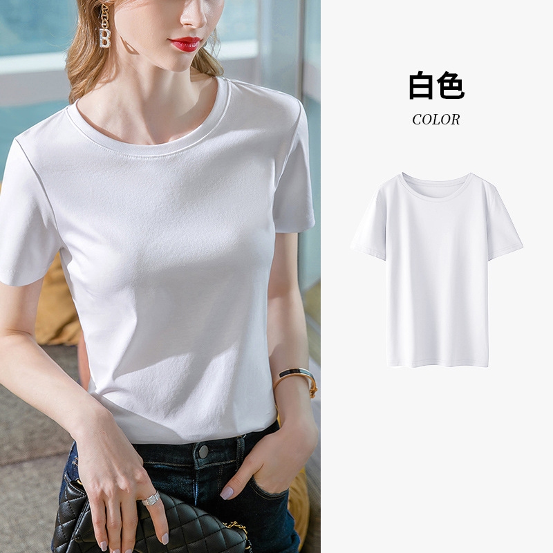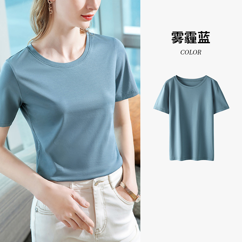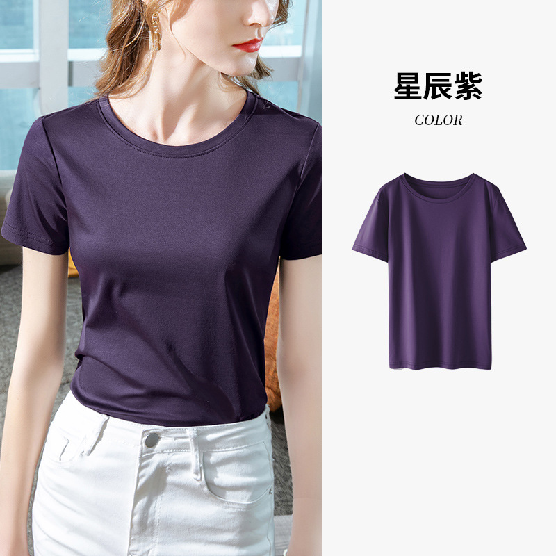 80-piece mercerized cotton off-the-shoulder T-shirt for women 2025 new style women's basic round-neck pure cotton T-shirt with a cinched waist short-sleeved top