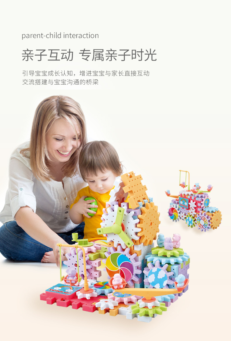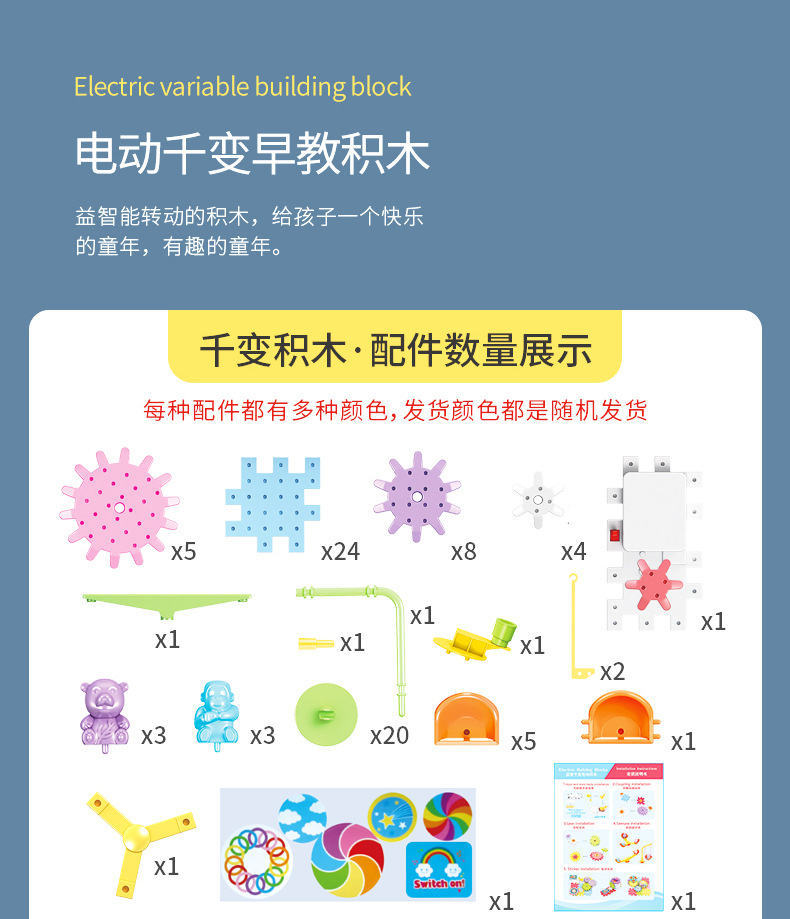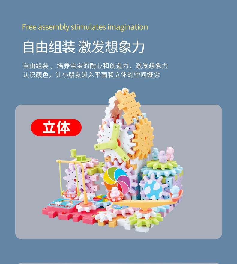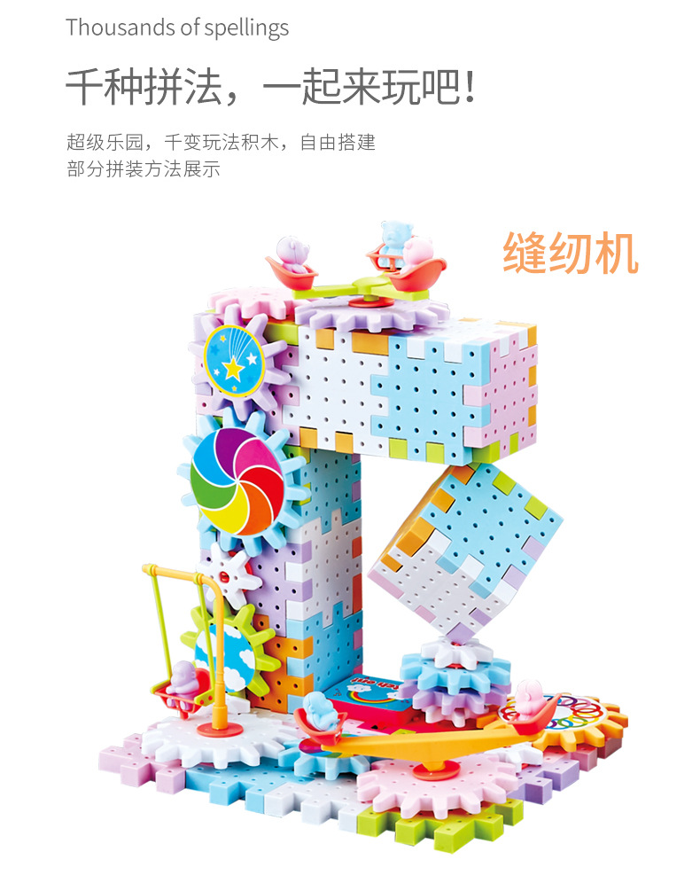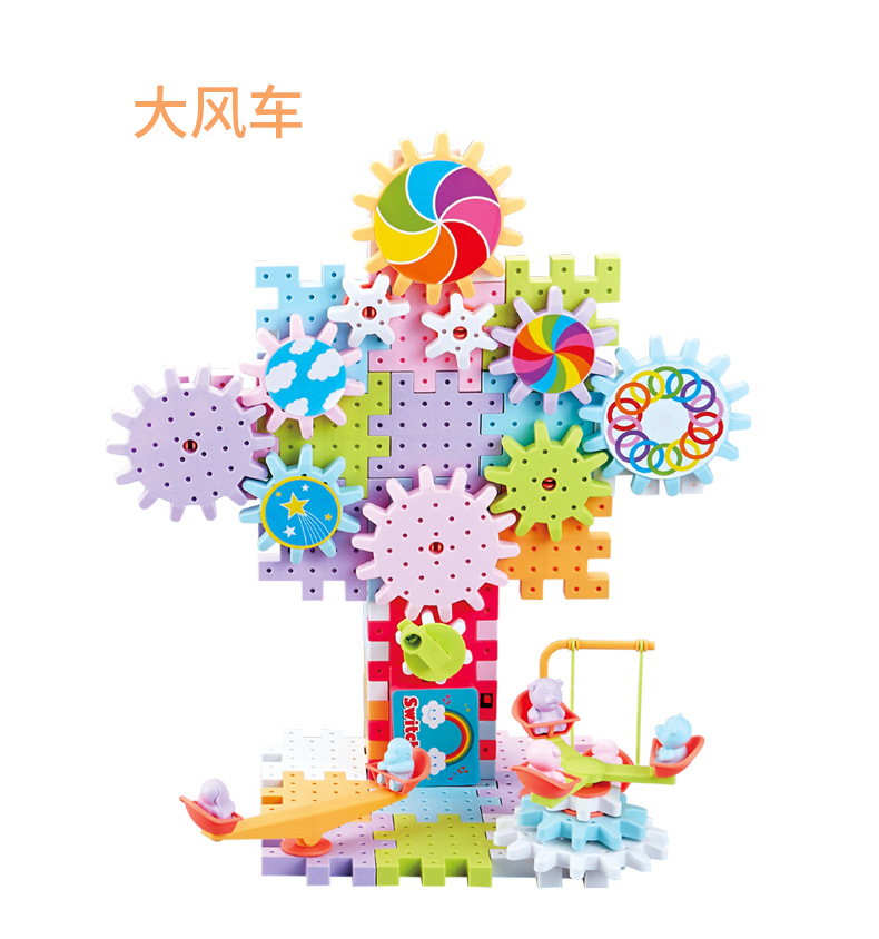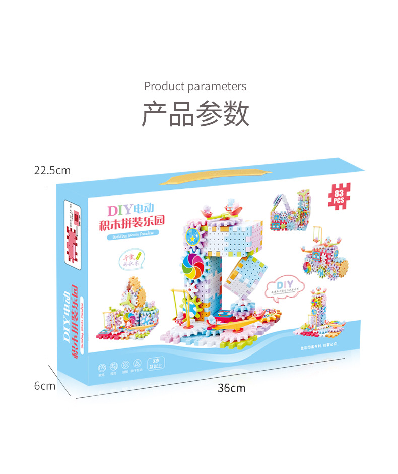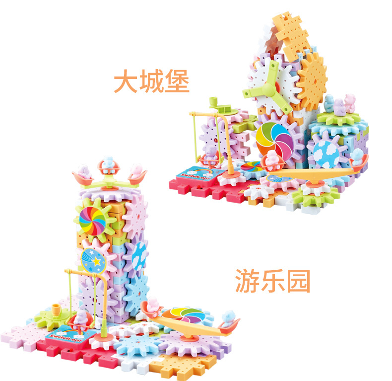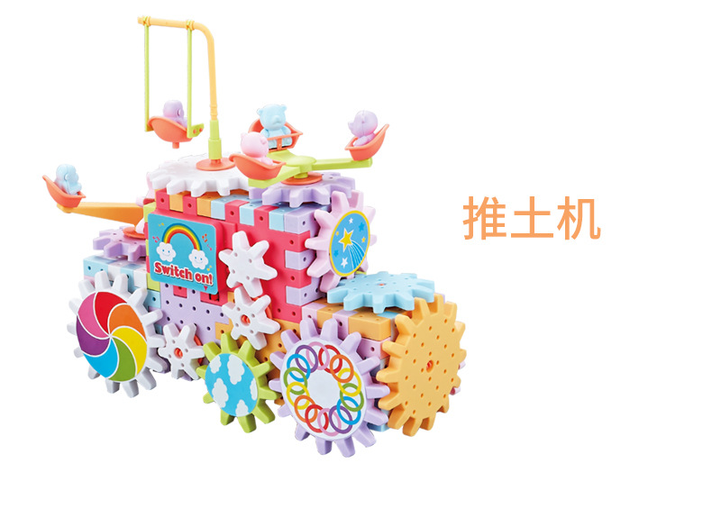 83 pieces of Qianbian electric building blocks, DIY macarons, gear rotating toys, children's educational assembly wholesale