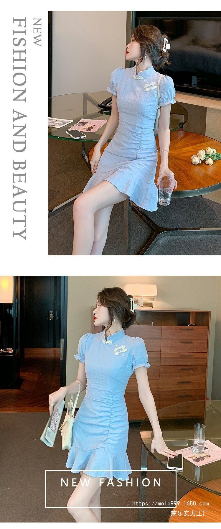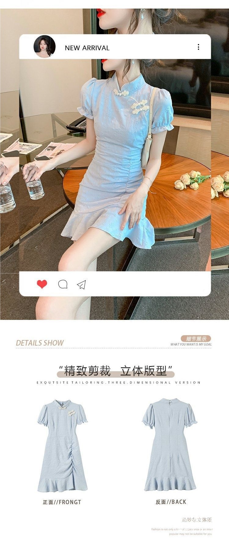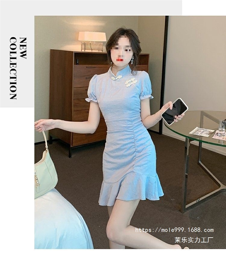9037 Chinese-style dress for Women's Summer 2025 New style, short and petite modified cheongsam, slimming and form-fitting fishtail dress