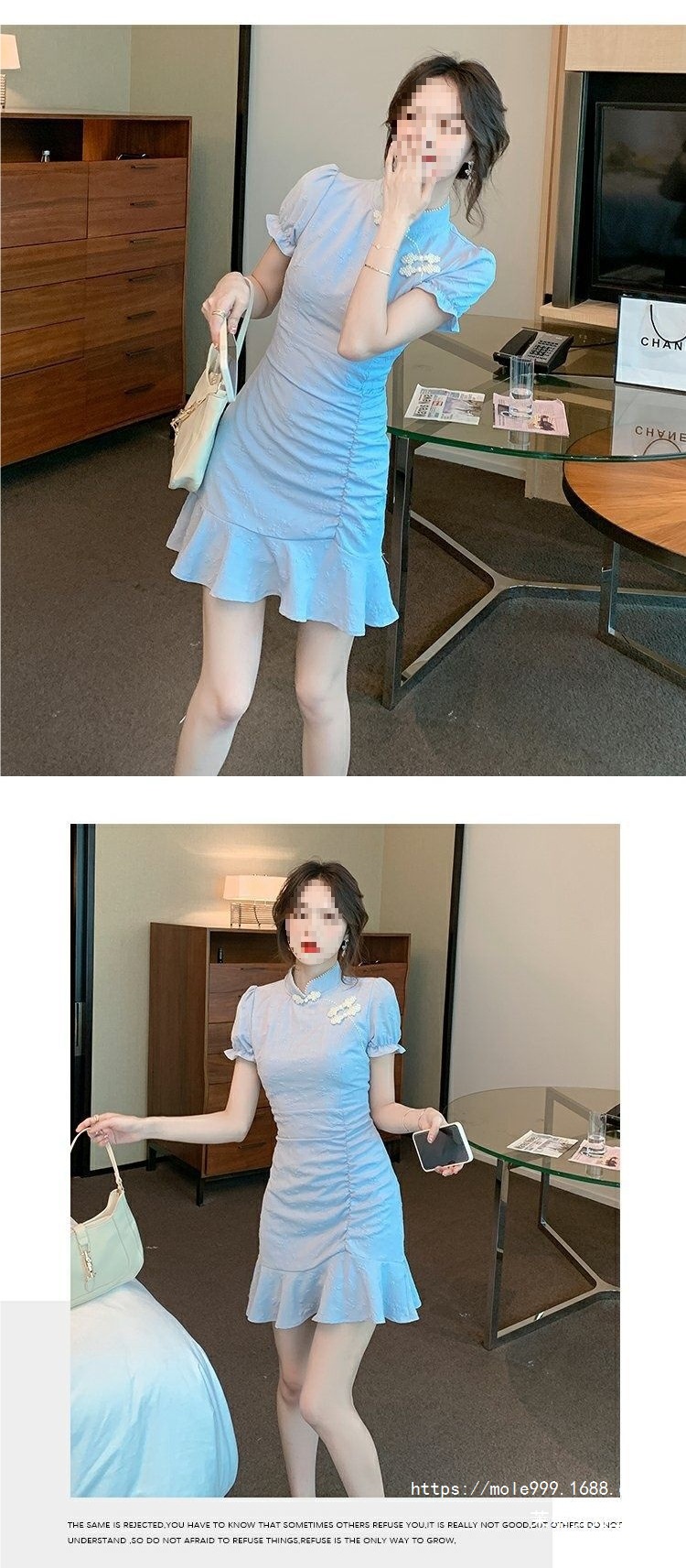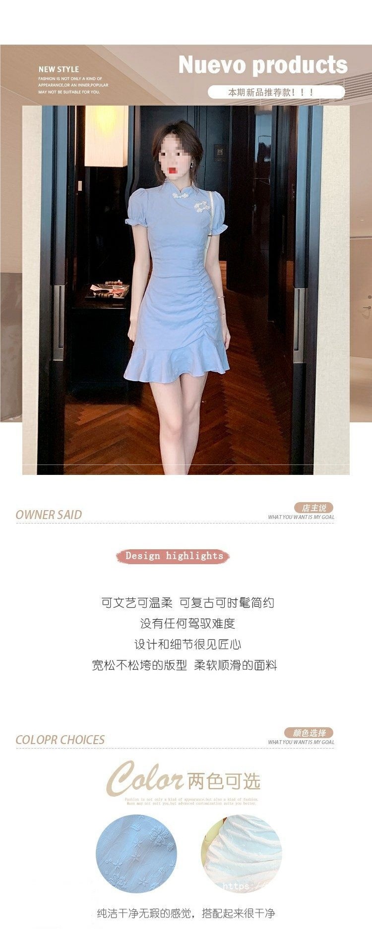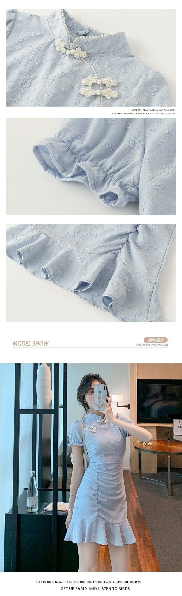 9037 Chinese-style dress for Women's Summer 2025 New style, short and petite modified cheongsam, slimming and form-fitting fishtail dress