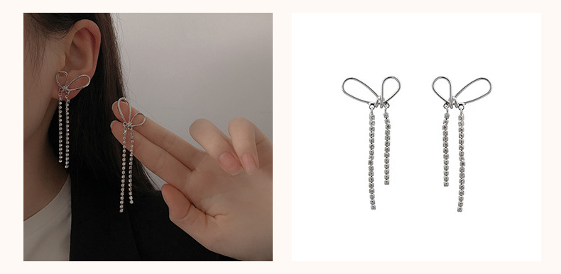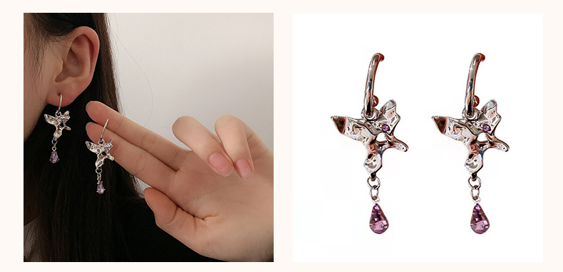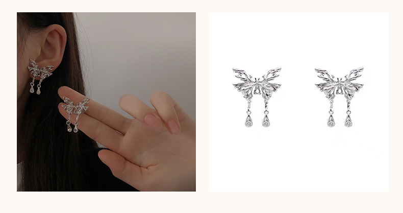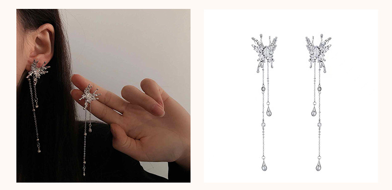18#R3331 Material: Alloy + Glass Size: Butterfly 3.1*2CM, long tassel 9.5CM, short tassel 4.5CM