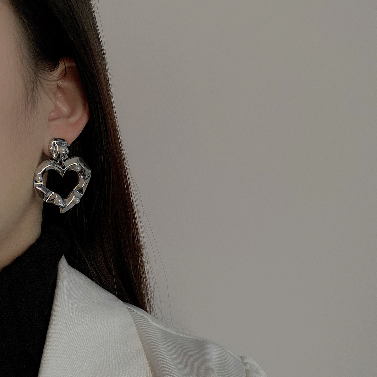 925 Silver Needle New heart-shaped tassel earrings, women's retro style, light luxury and high-end feel, small and niche earrings and accessories wholesale pomelo ear