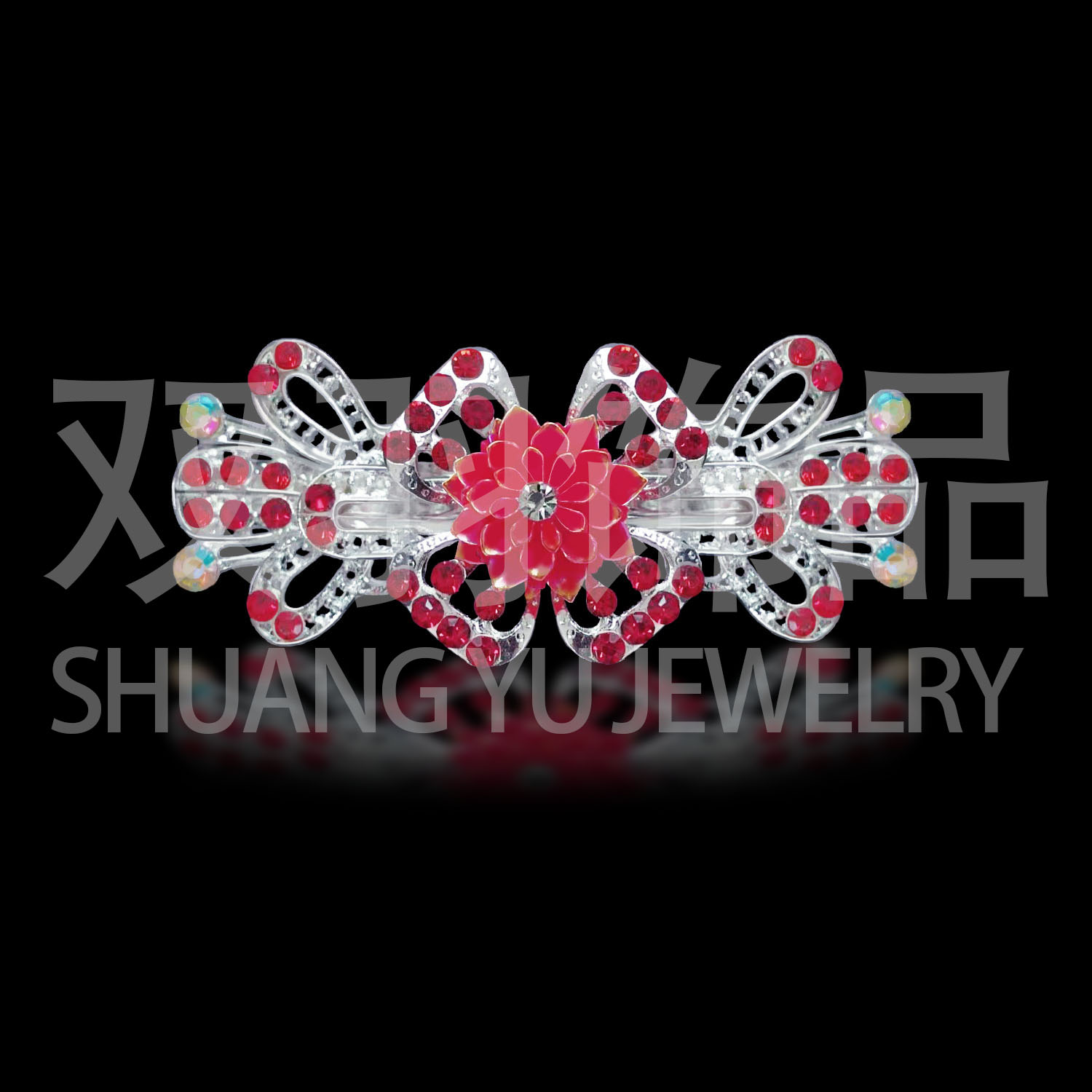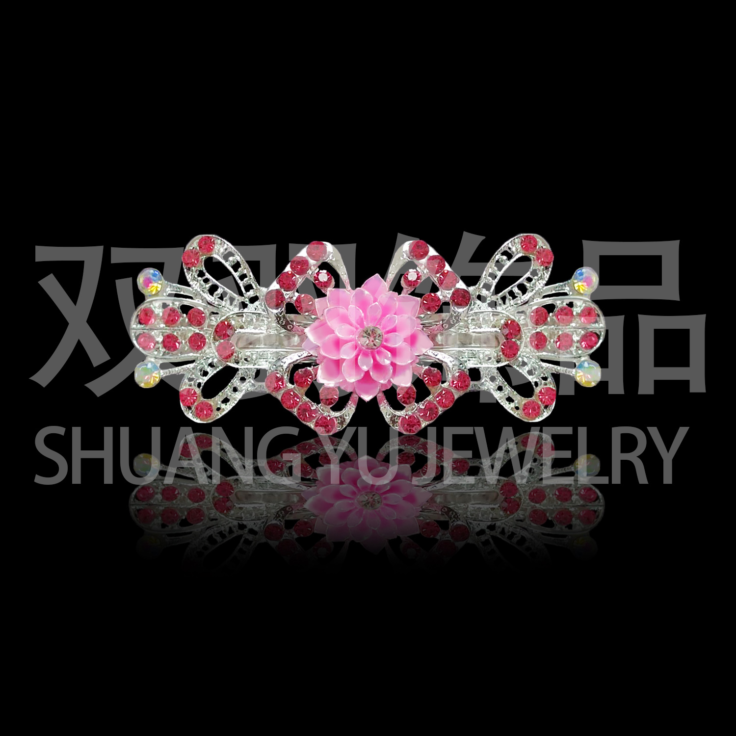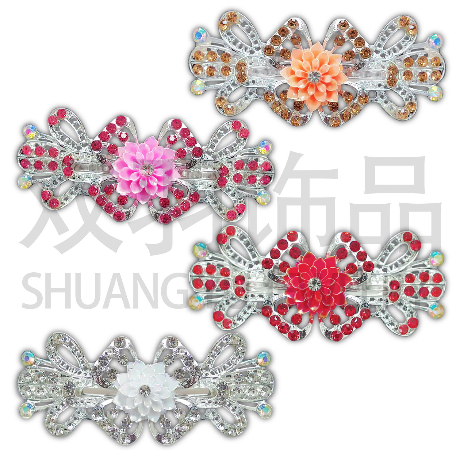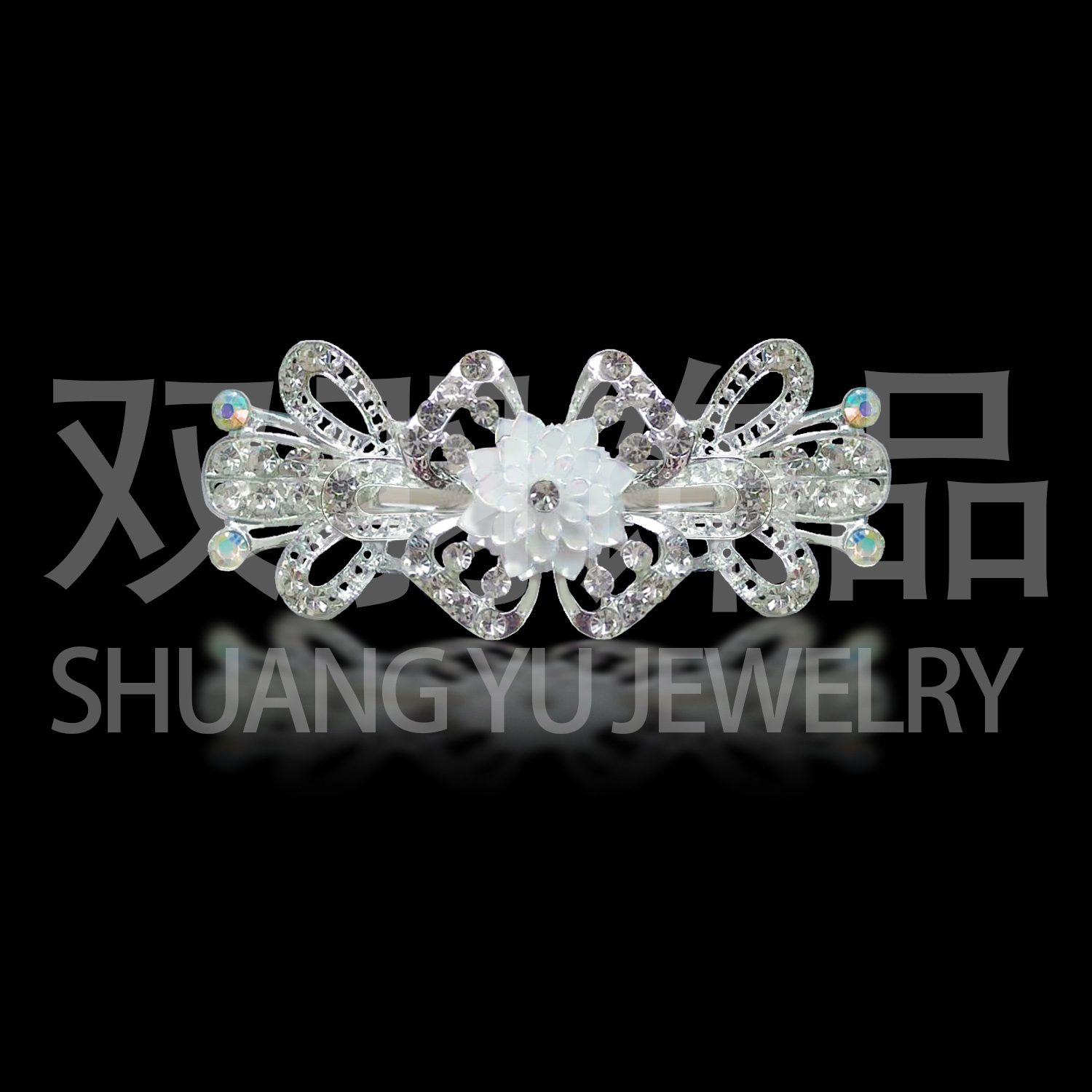 水晶发夹盘发器大花朵新款发饰 欧美爆款首饰发夹头饰发饰合金发夹 水钻发夹