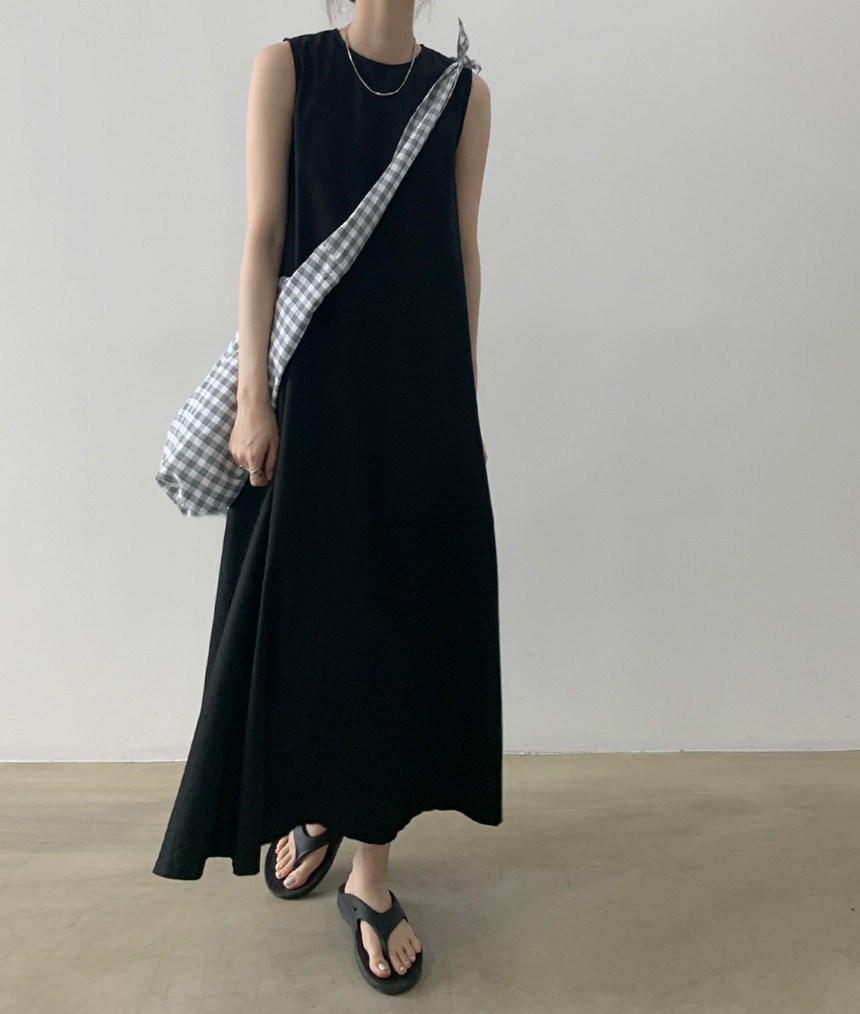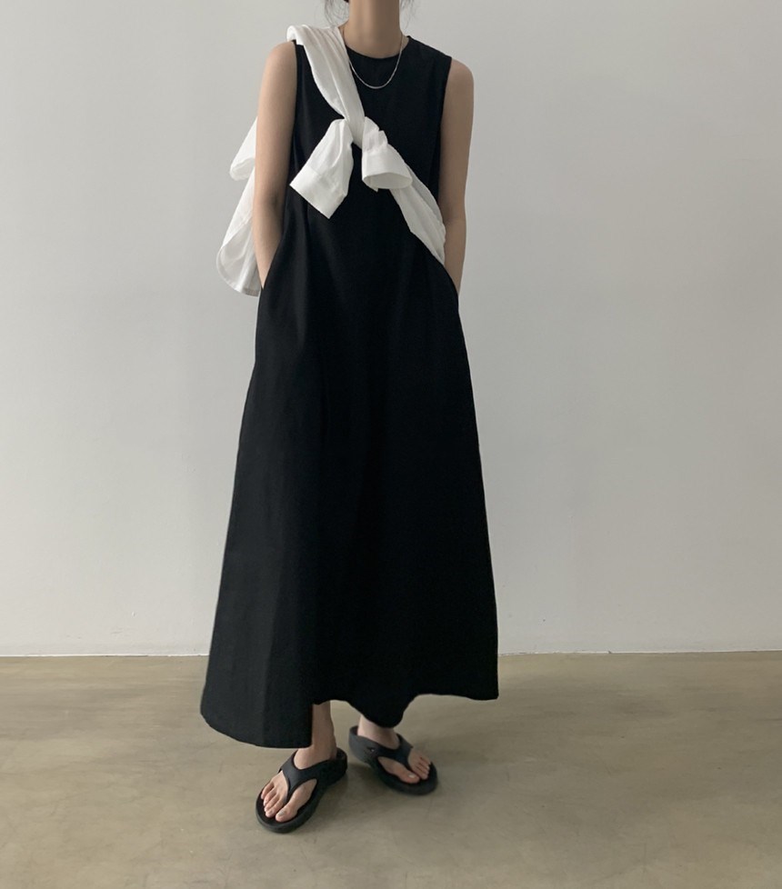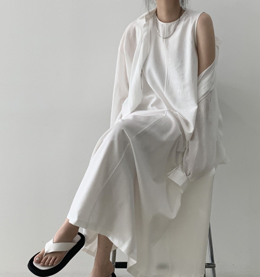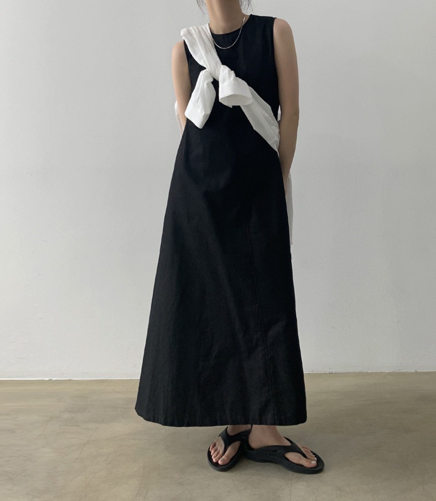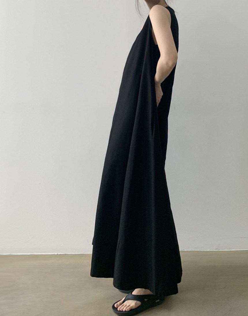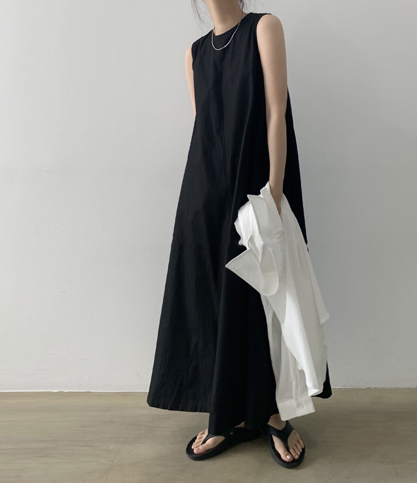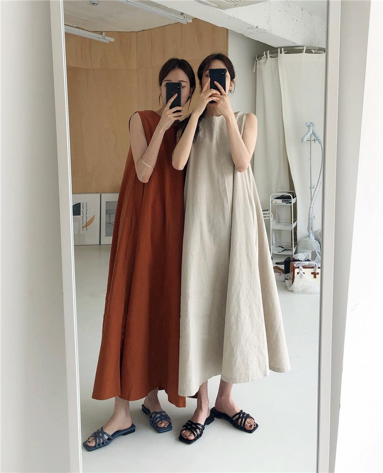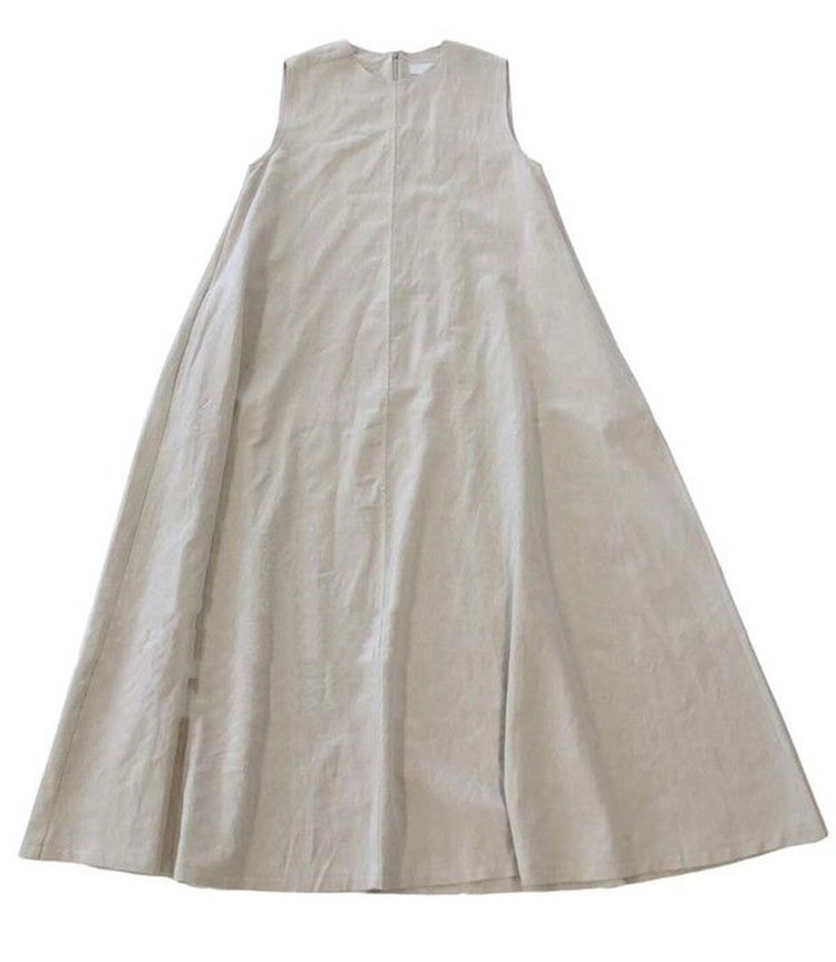A 2023 new casual French cotton and linen dress with a laid-back tank top. It's a loose and long summer dress