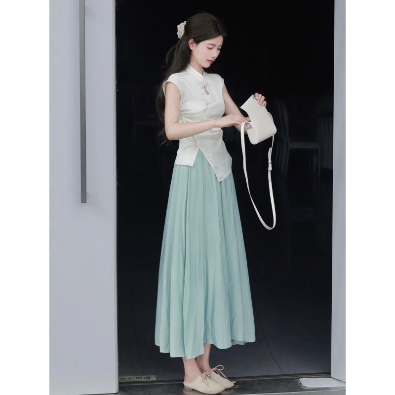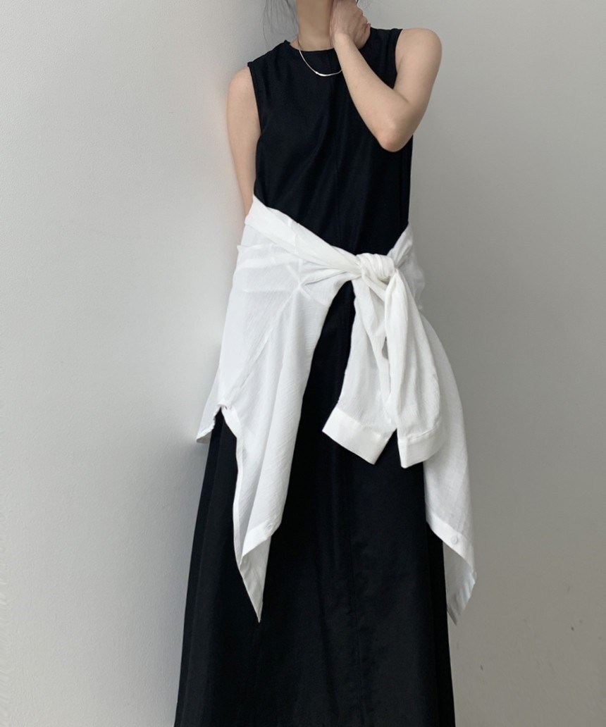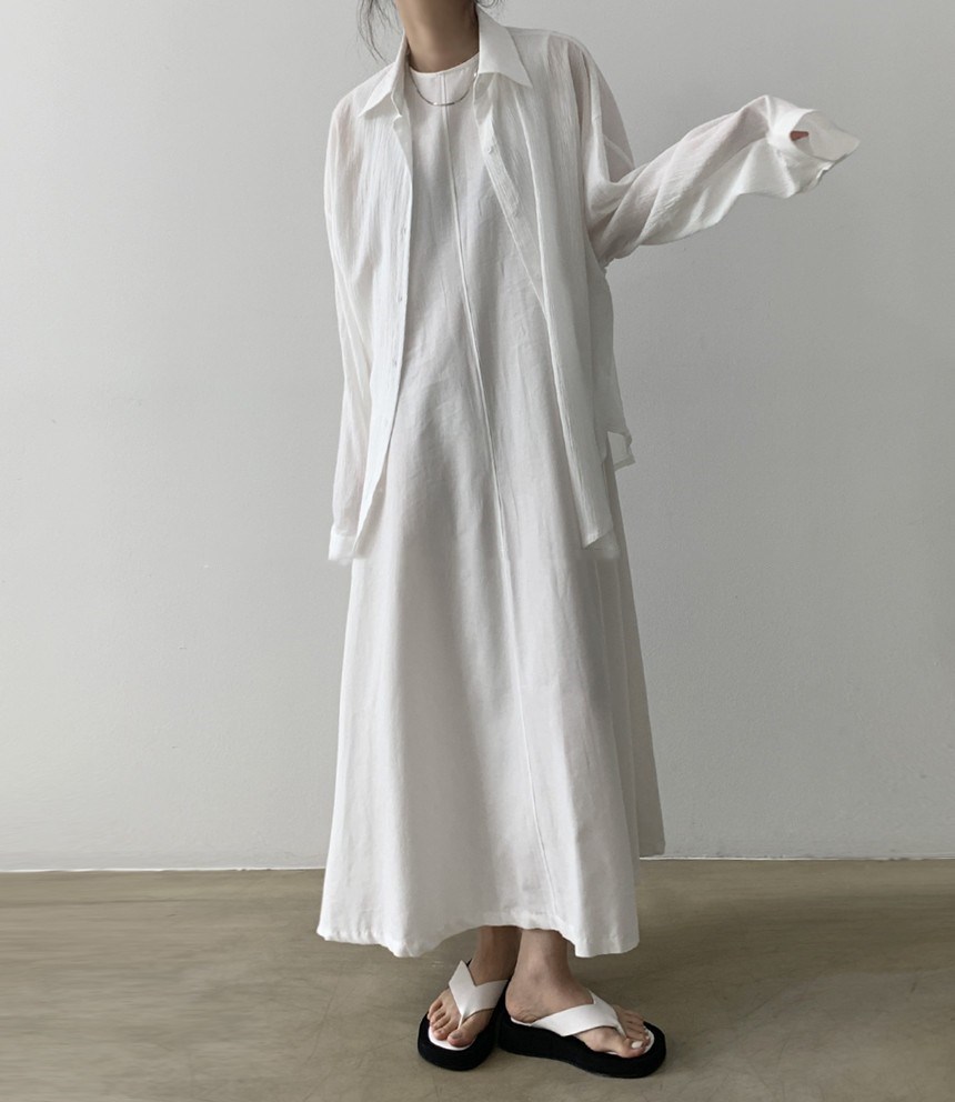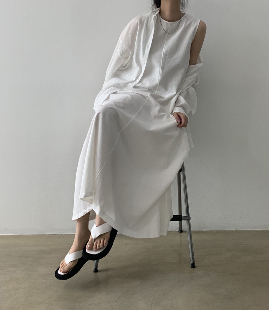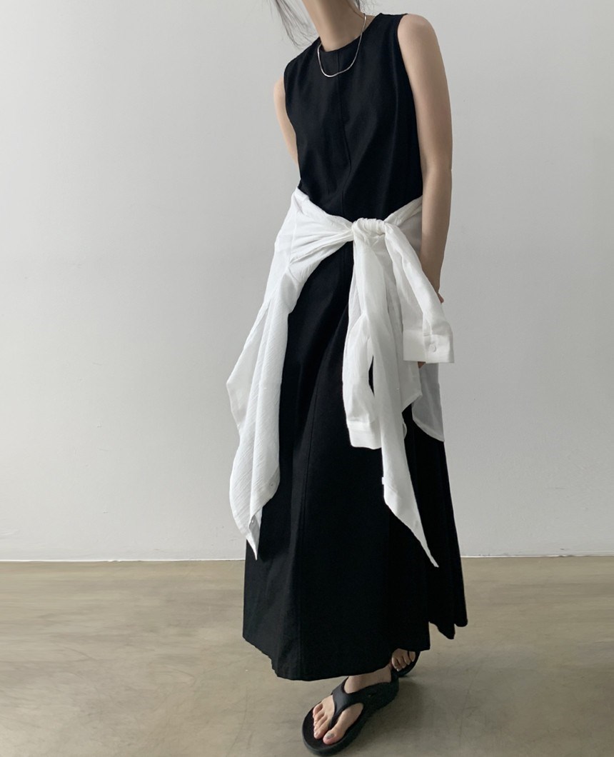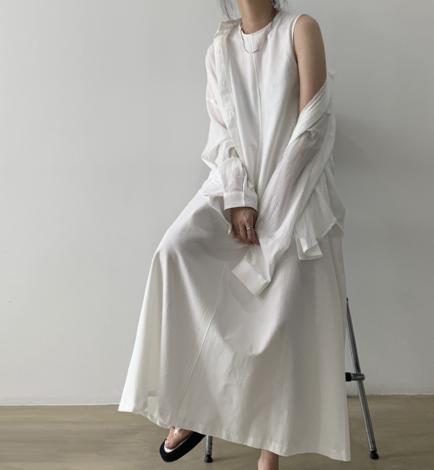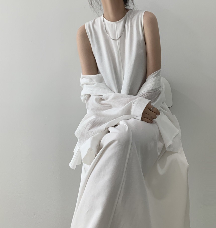 A 2023 new casual French cotton and linen dress with a laid-back tank top. It's a loose and long summer dress