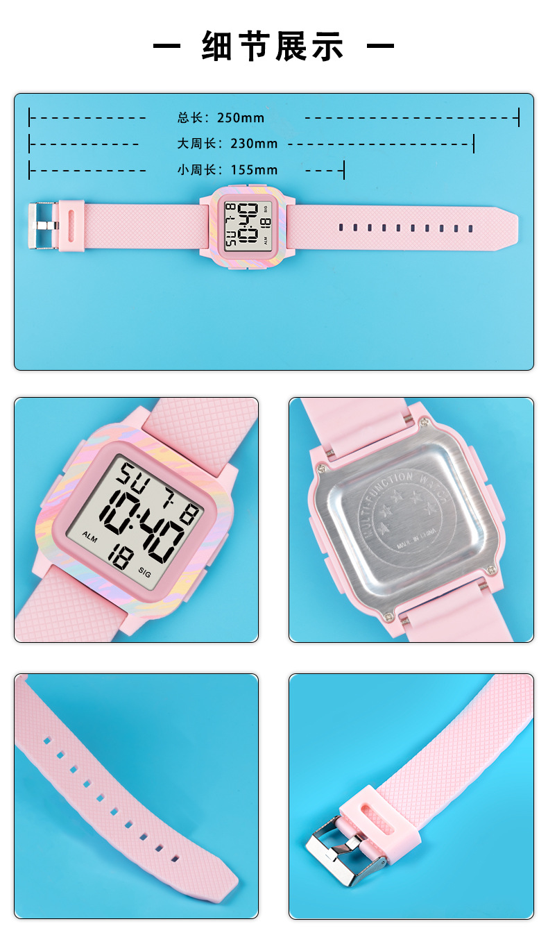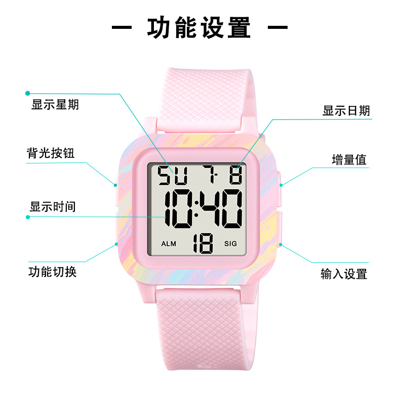 A batch of best-selling, cute, fashionable and trendy children's watches, electronic watches, cartoon multi-functional square sports watches for export