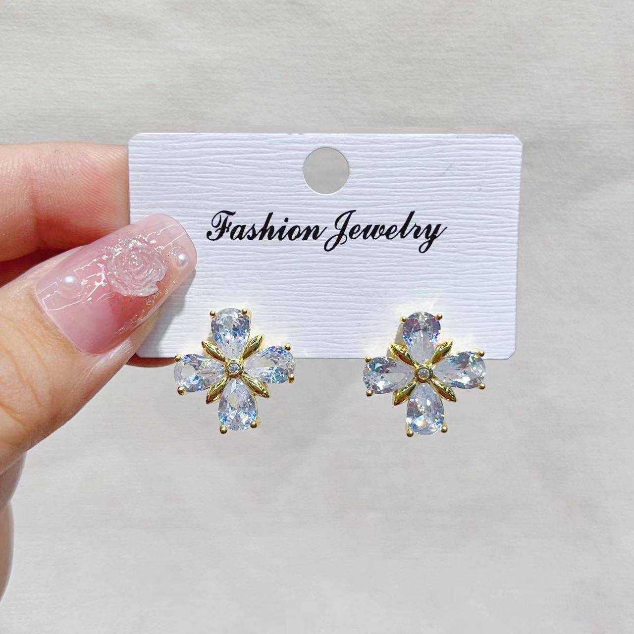 A collection of cross-border light luxury and versatile copper-plated real gold zircon butterfly design earrings from Europe, America, Japan and South Korea