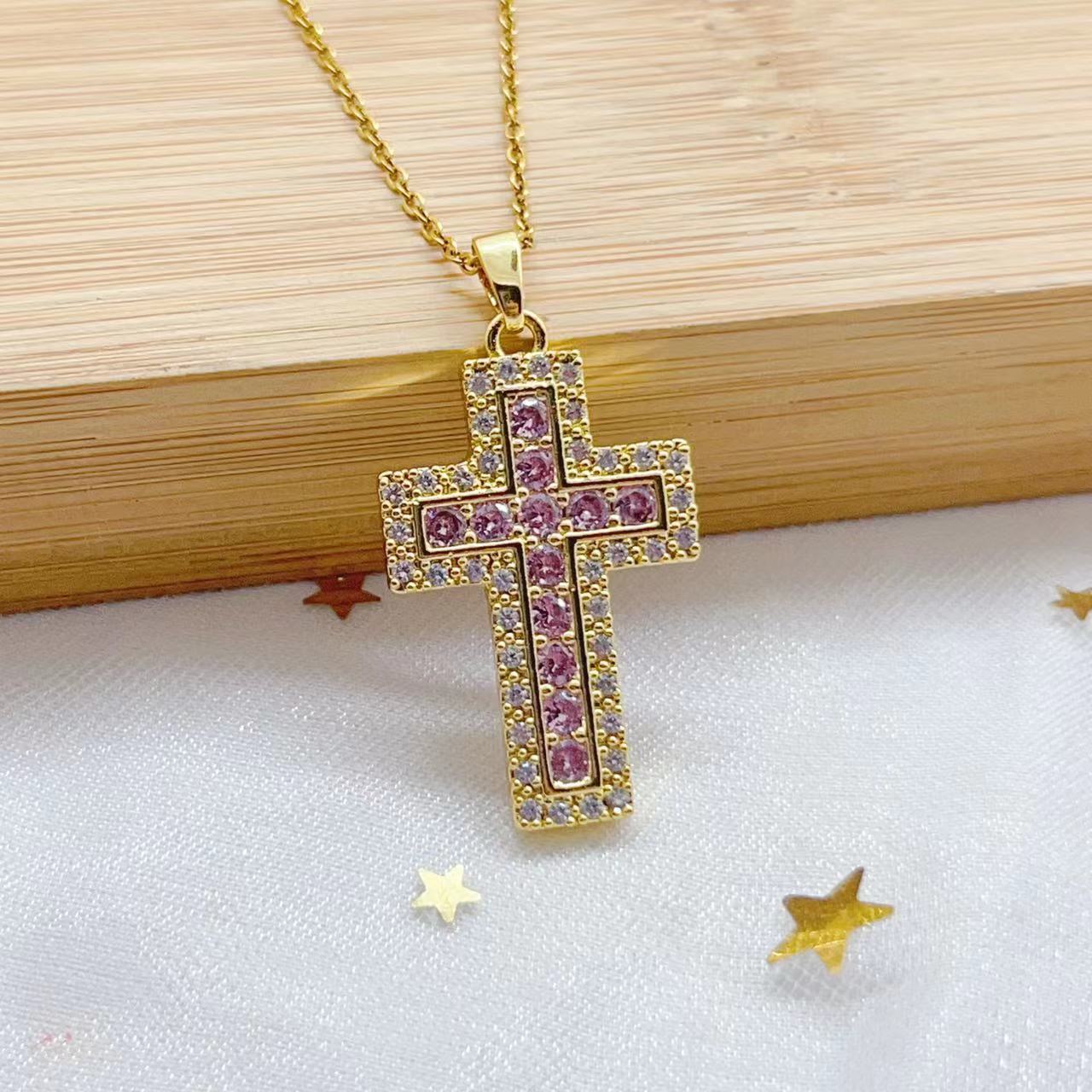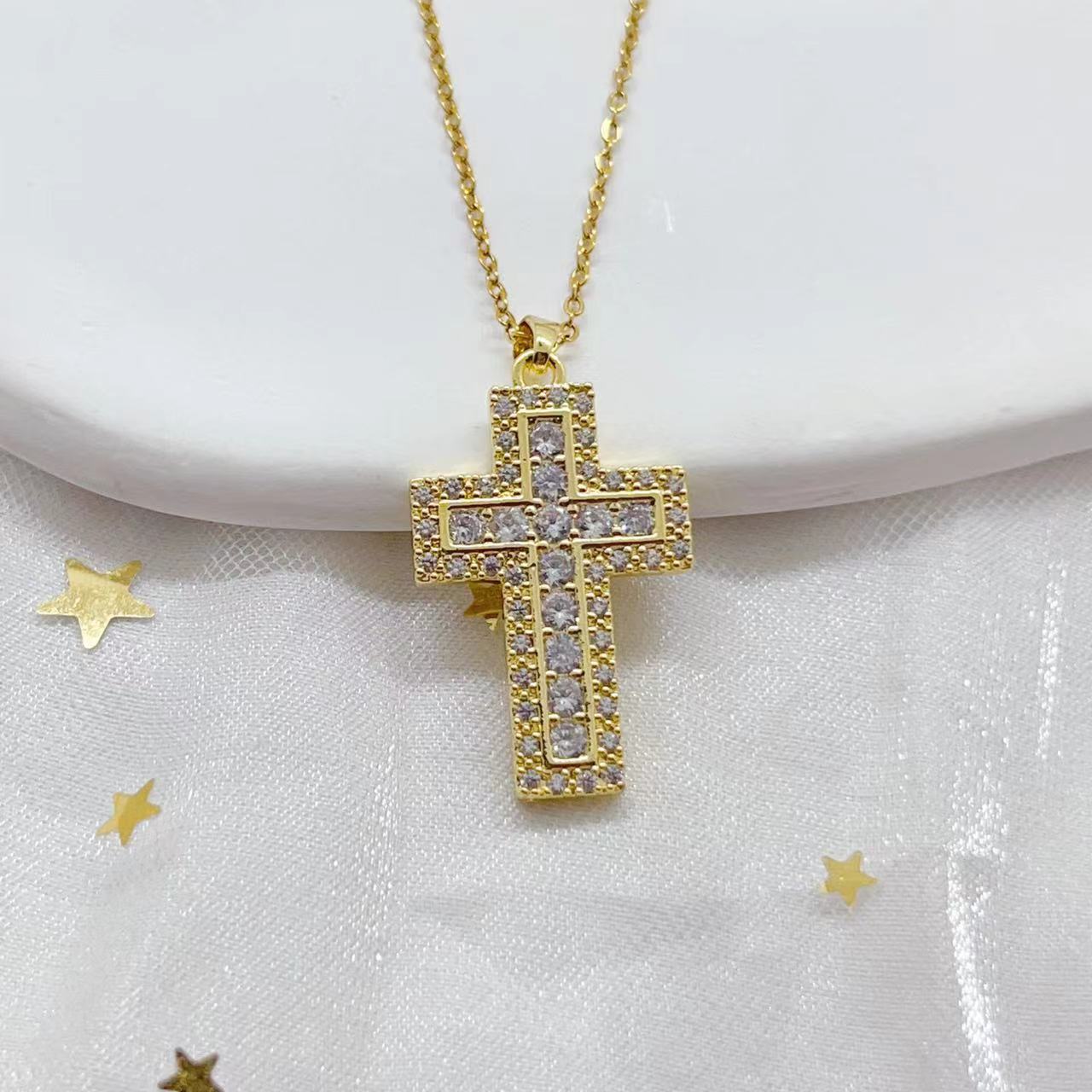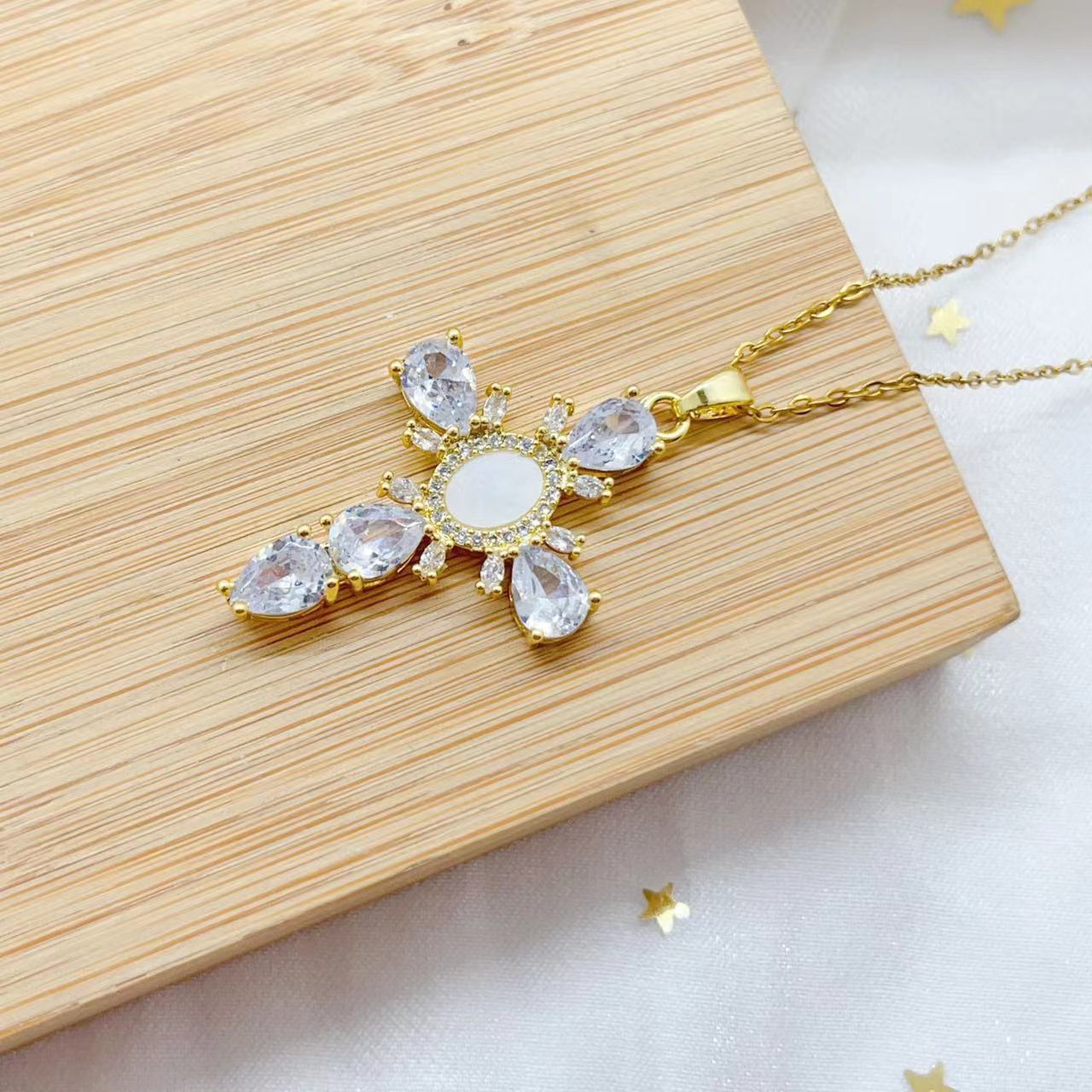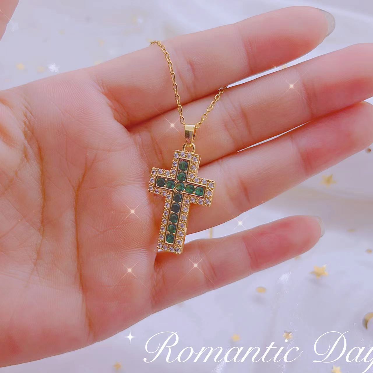 A cross-border cross-shaped zirconium copper micro-inlaid zircon pendant from Europe and America, an inS-style light luxury fashion and individuality necklace