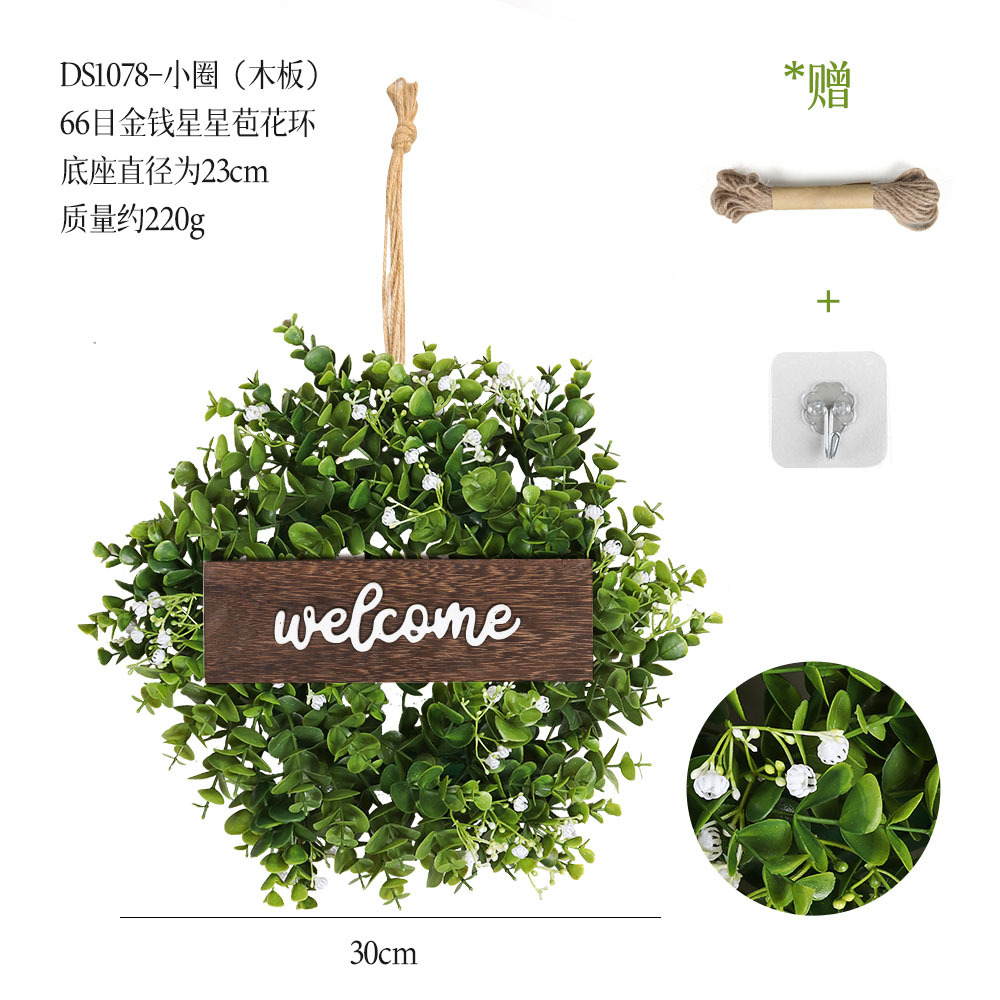 DS1021 light cream white + wood board - wool 66-mesh small ring eucalyptus garland