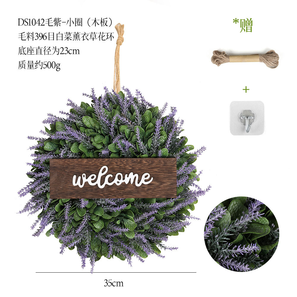 DS1039 purple and wood board - 132-mesh small ring six-ear lavender wreath made of wool