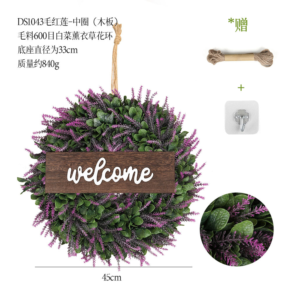 DS1040 Red lotus + wood board - 200-mesh wool middle ring six-ear lavender wreath