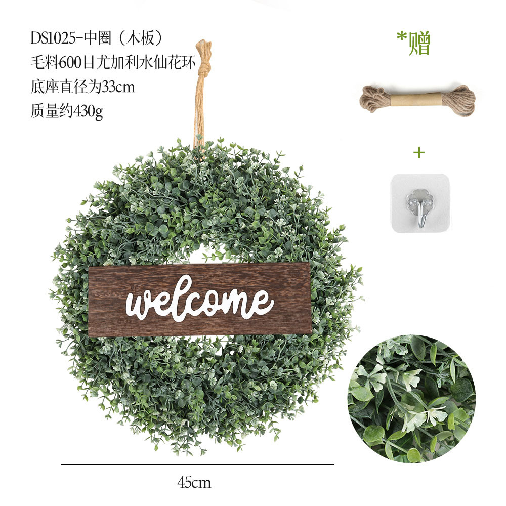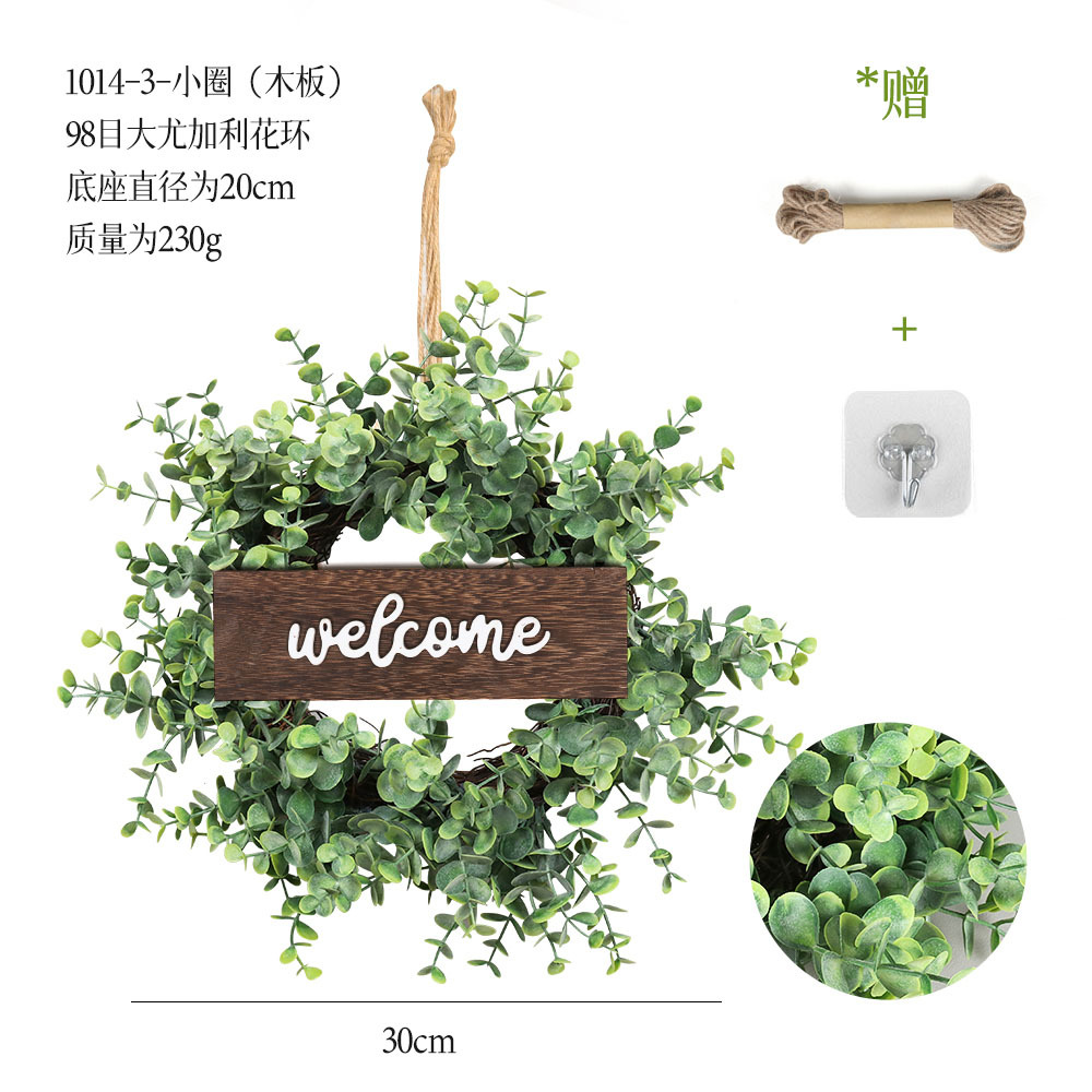 DS1022 milky white + wood board - 100-mesh wool center ring eucalyptus wreath
