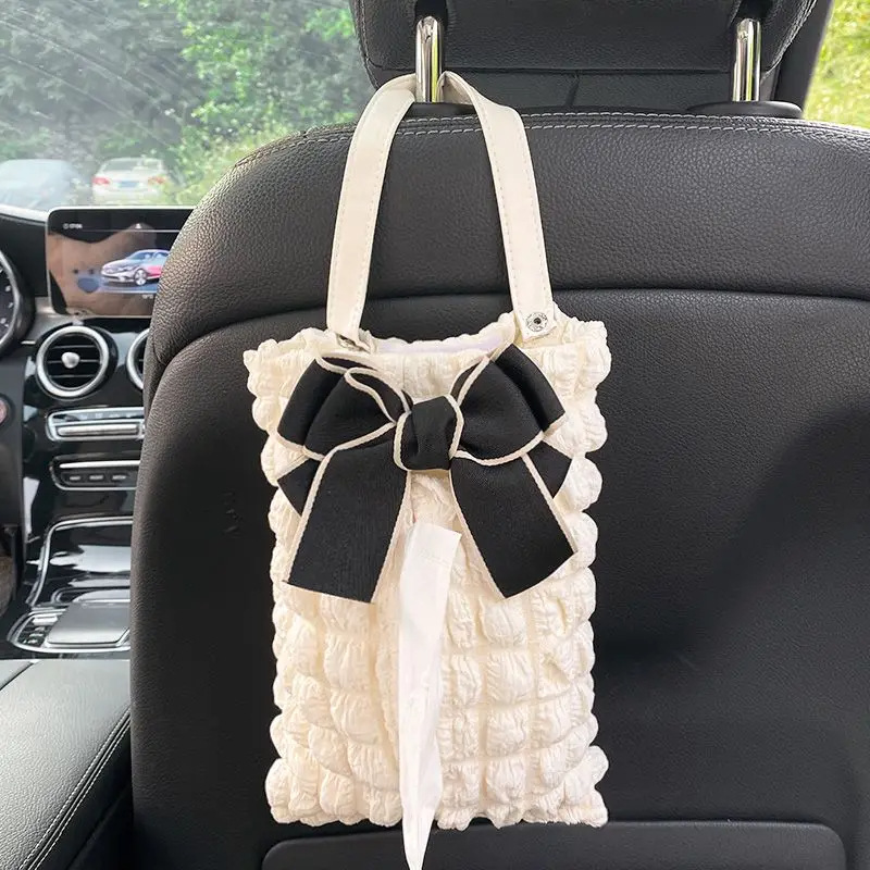 A cute car decoration item, a creative car seat backrest hanging tissue bag with the same style as the Internet celebrity cream puff car tissue box
