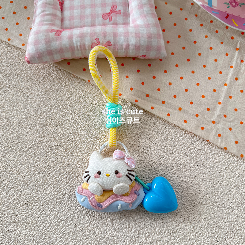 A cute girl's embroidered cat corduroy hair tie, candy cherry elastic hair tie, bun hair loop, hair accessory and headwear