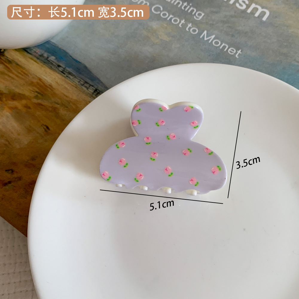 A cute girl with a small amount of hair, a small floral bow clip, a half-tied hair clip at the back of the head, and a shark clip with a high-end feel