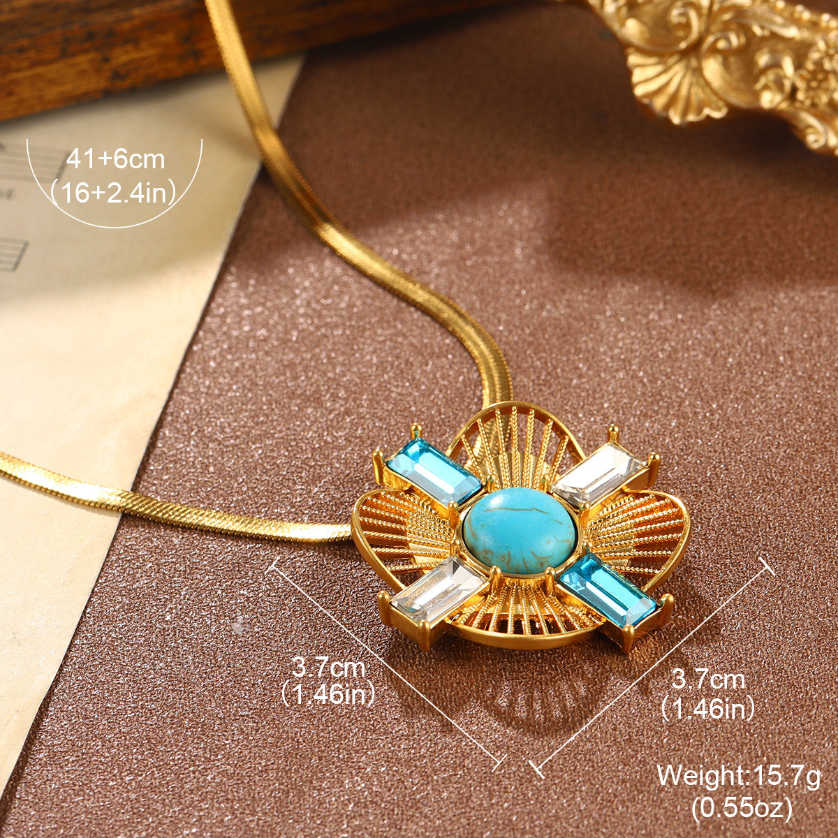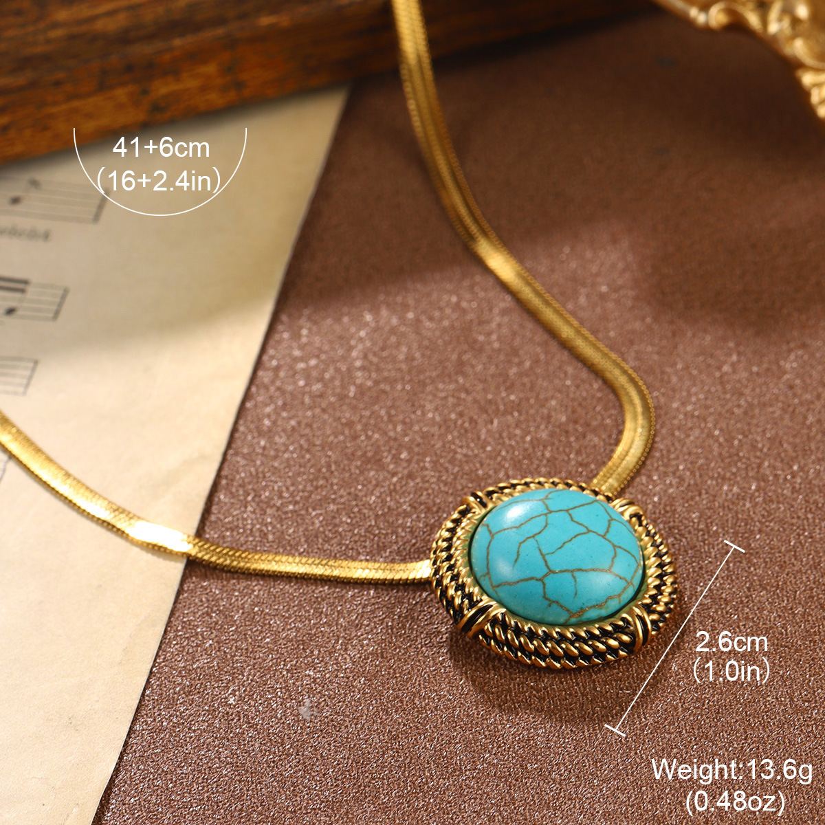 A fashionable French versatile turquoise necklace for ladies, exuding a sense of high-end retro single-layer fashion and elegance