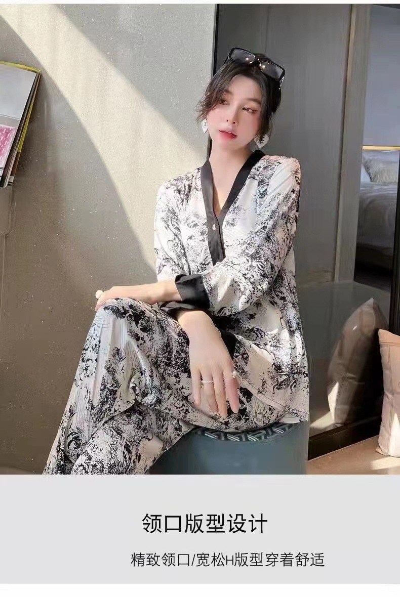 A four-piece set of traditional Chinese trend ink-wash painting ice silk home wear for women's summer, a new fashionable printed loose large-sized pajama set