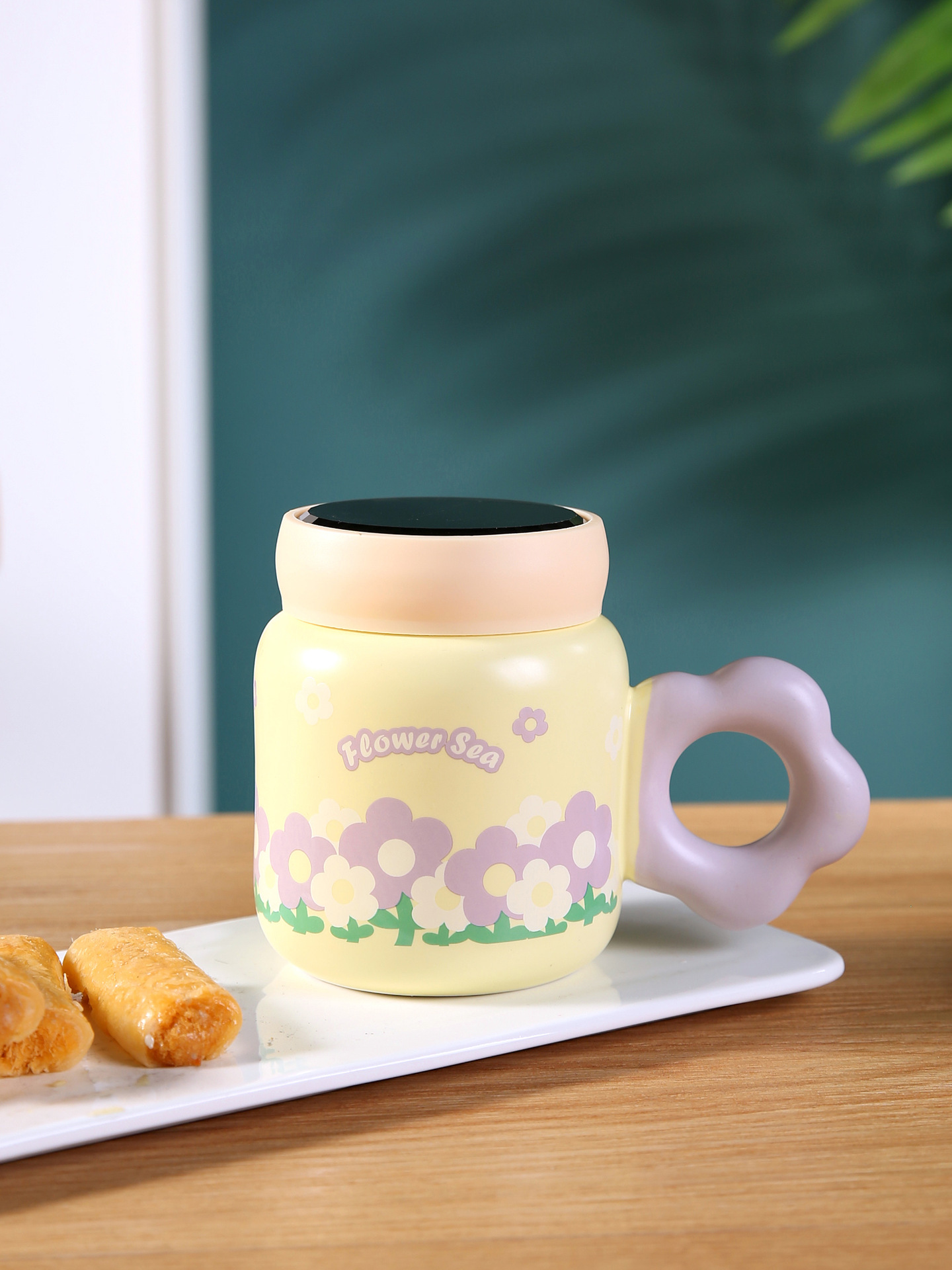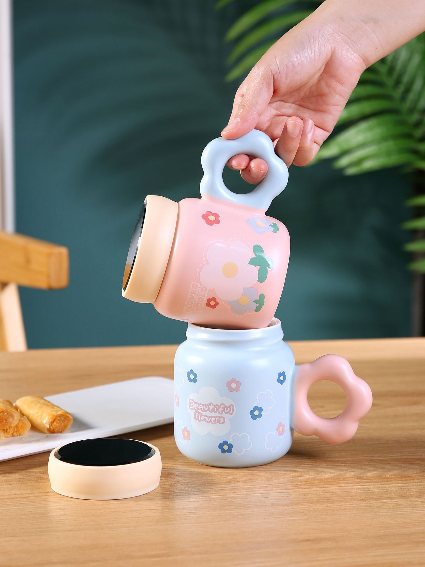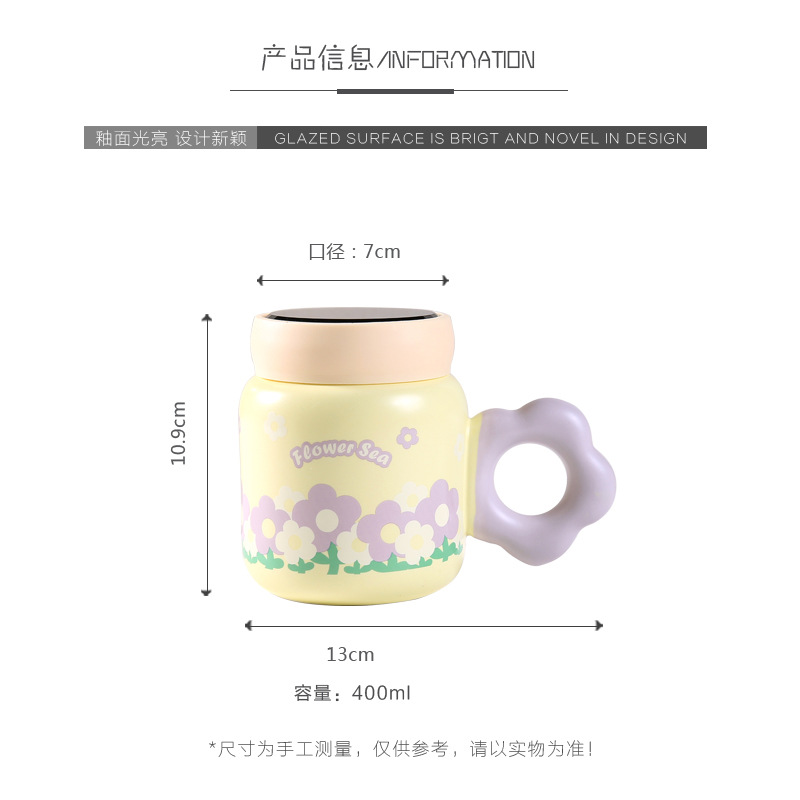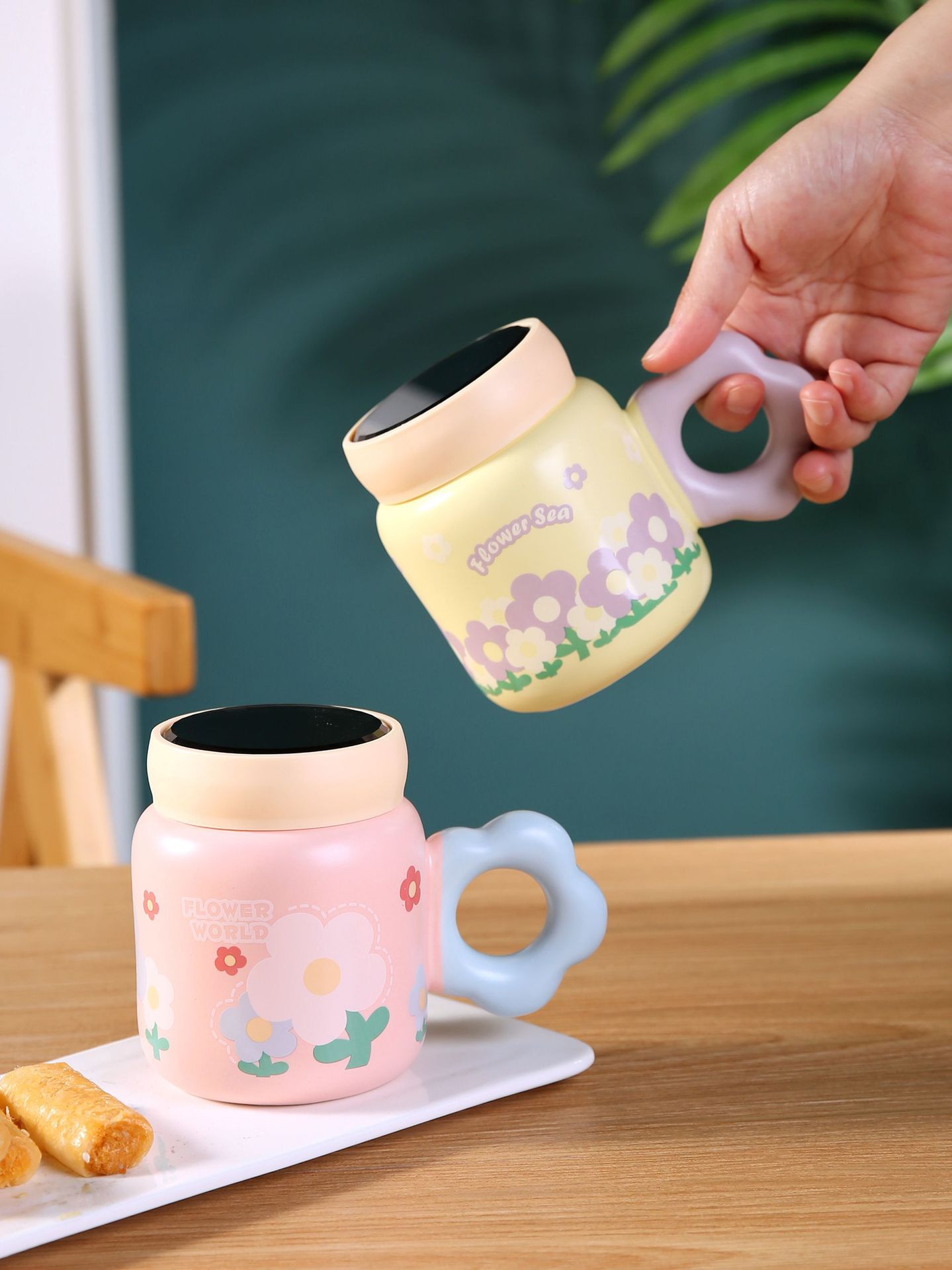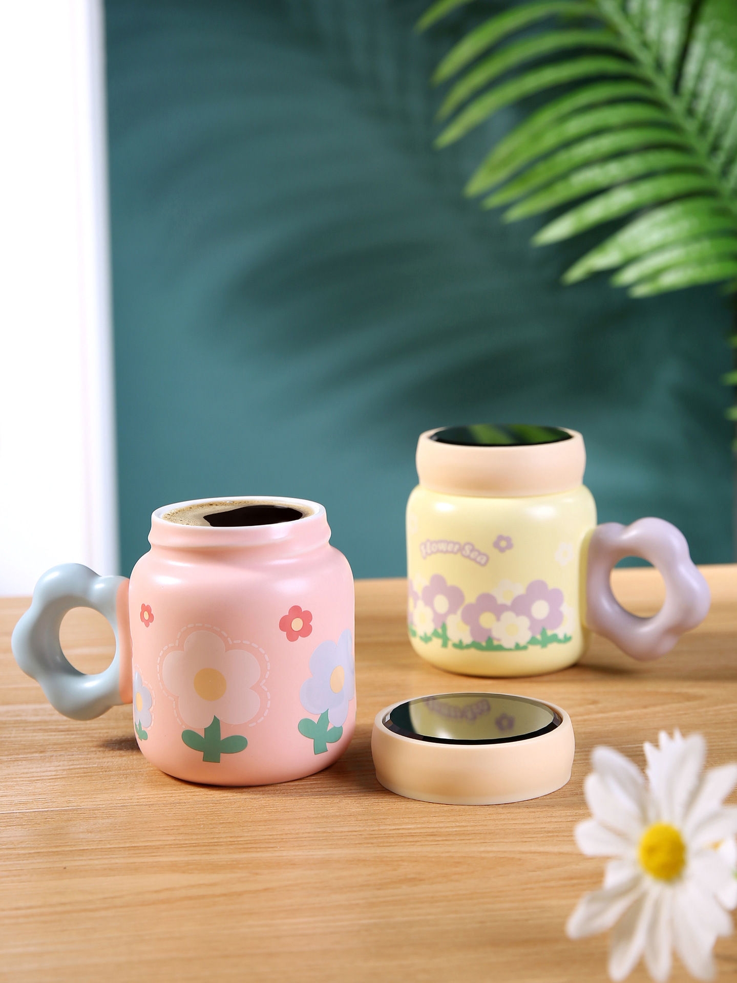 A high-appearance-level, cute and pastoral series hand-painted flower, fresh and clean mirror ceramic cup for girls' breakfast milk cup